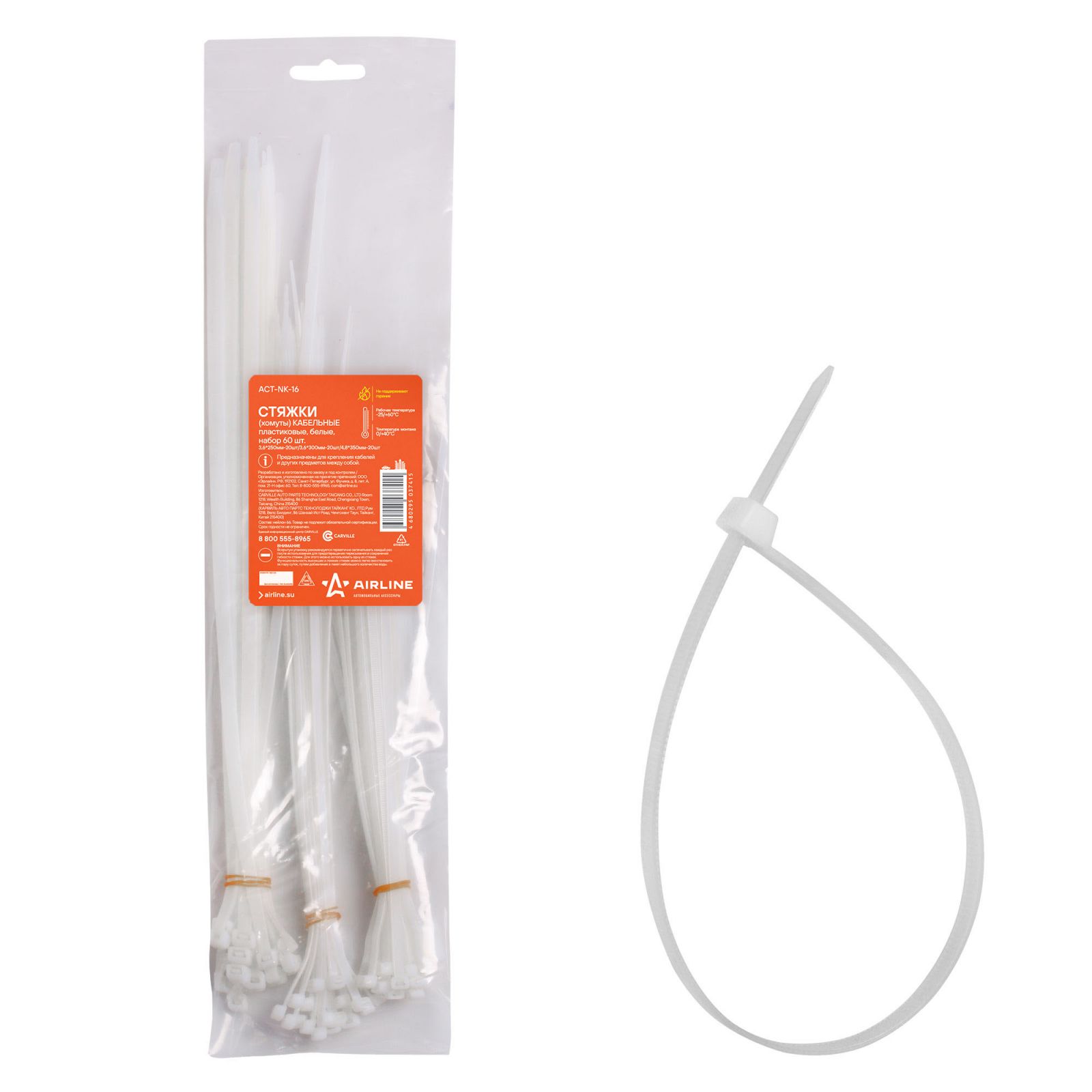 Стяжки (хомуты) кабельные, пласт. бел., набор 60шт.(3,6*250мм-20шт/3,6*300мм-20шт/4,8*350мм-20шт) (ACT-NK-16)