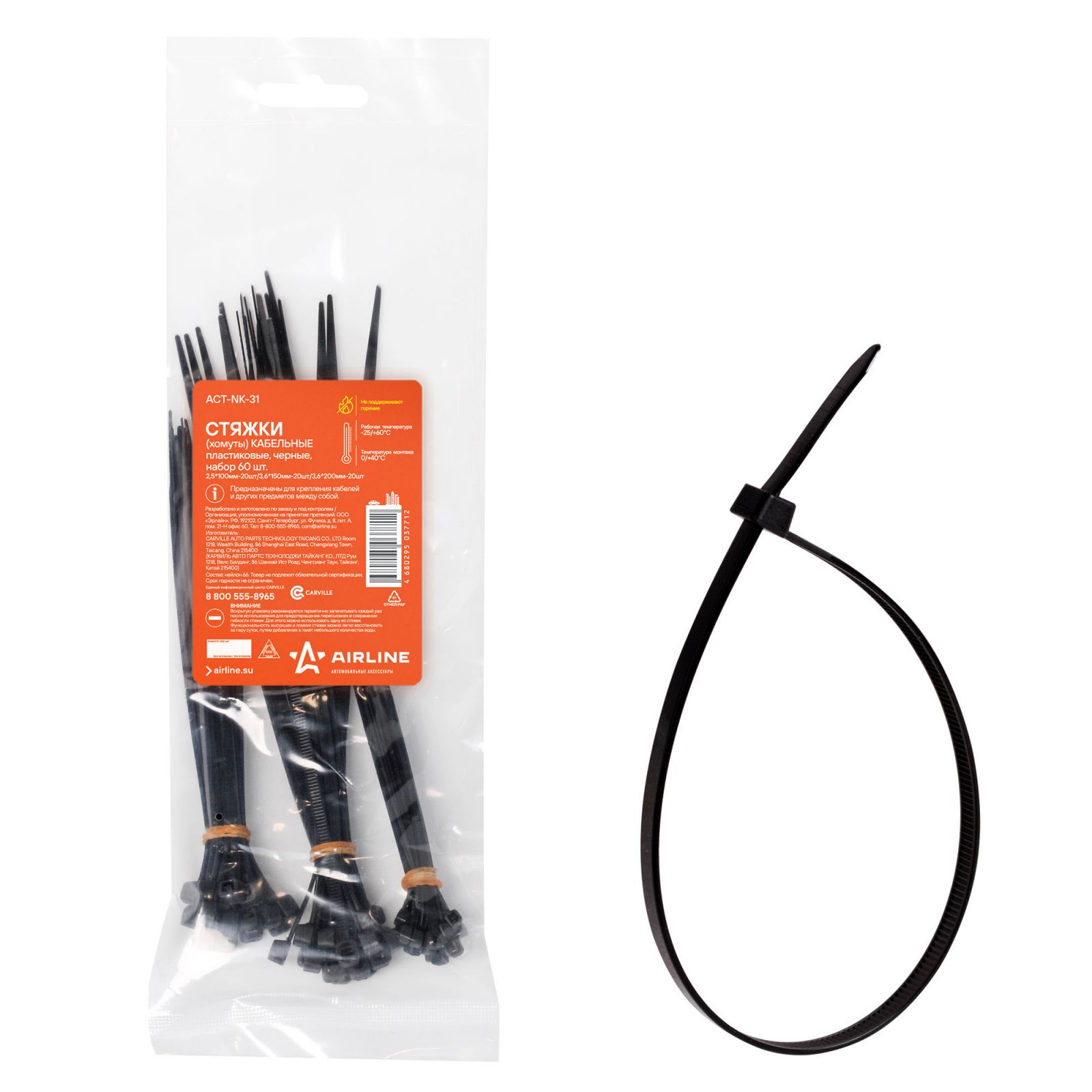 Стяжки (хомуты) кабельные, пласт. черн., набор 60шт.(2,5*100мм-20шт/3,6*150мм-20шт/3,6*200мм-20шт) (ACT-NK-31)