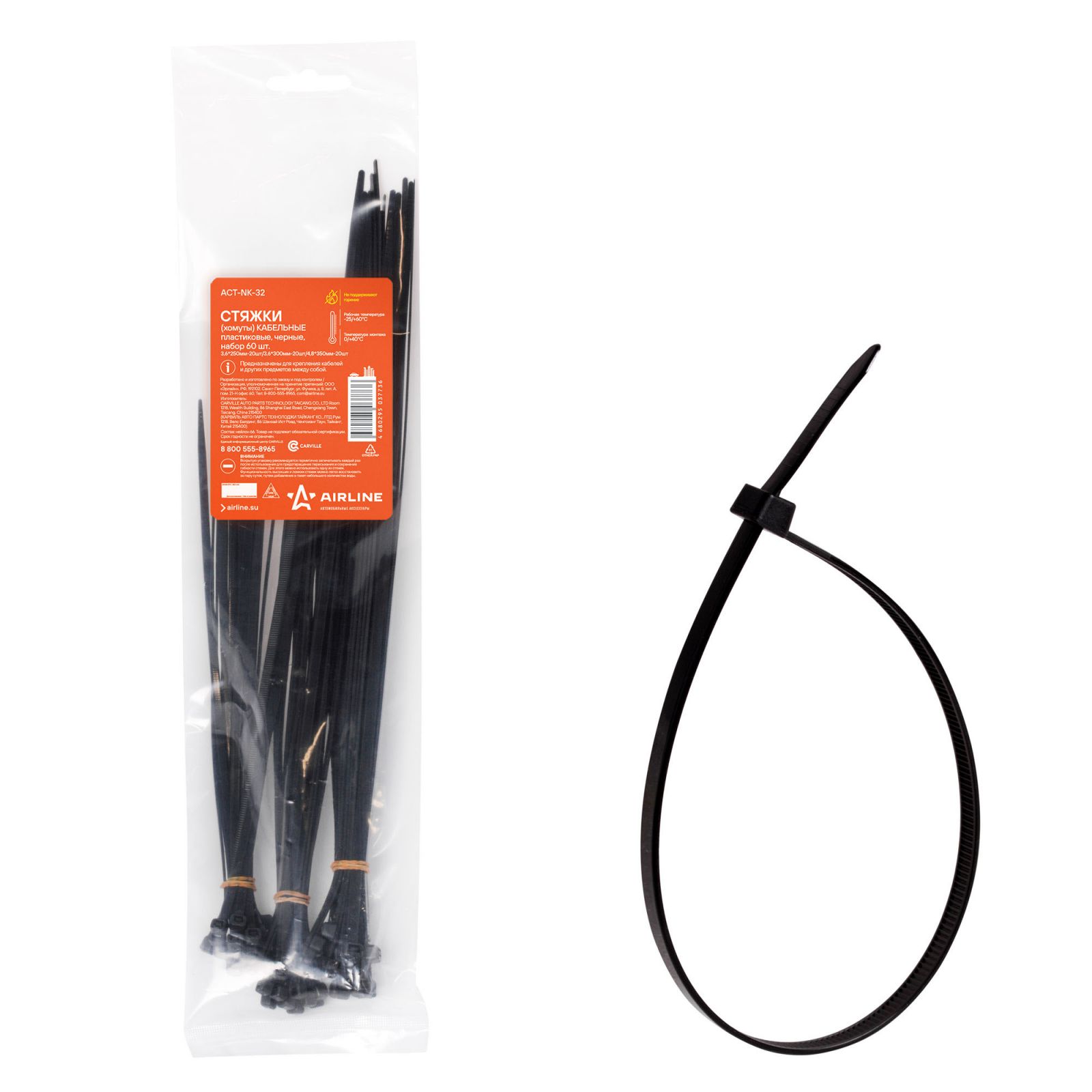 Стяжки (хомуты) кабельные, пласт. черн., набор 60шт.(3,6*250мм-20шт/3,6*300мм-20шт/4,8*350мм-20шт) (ACT-NK-32)