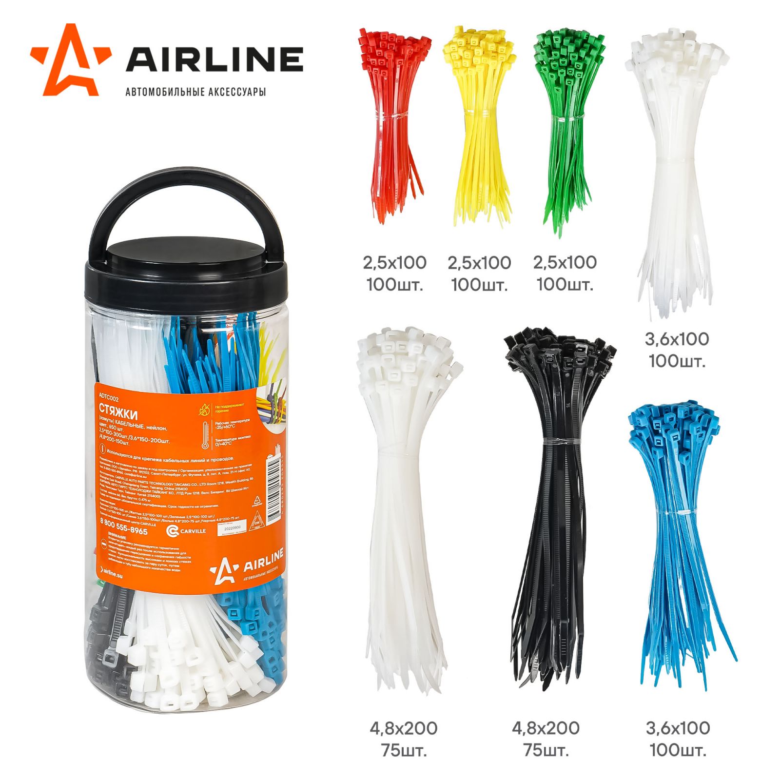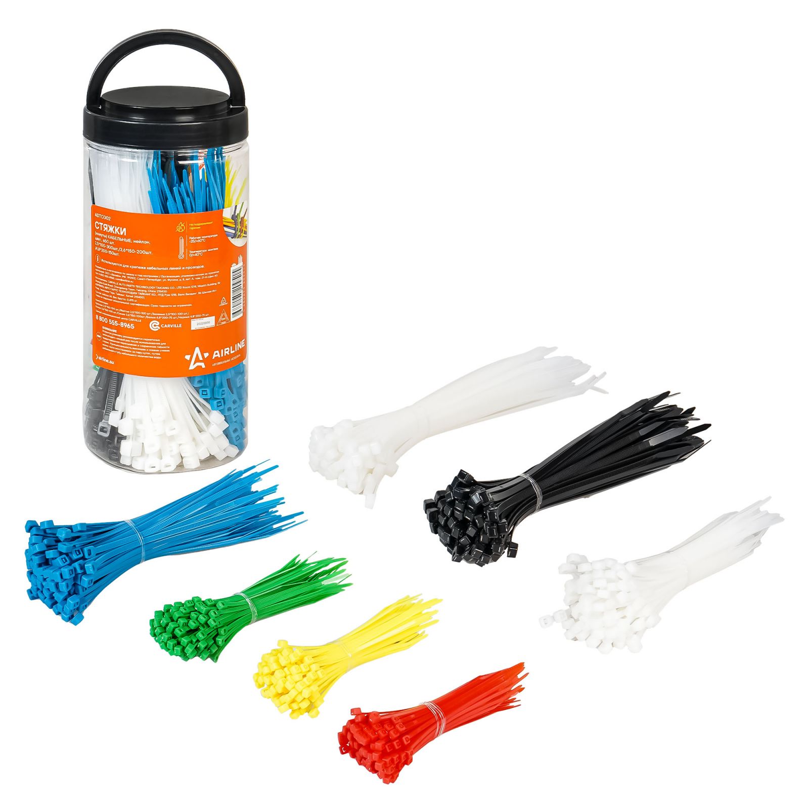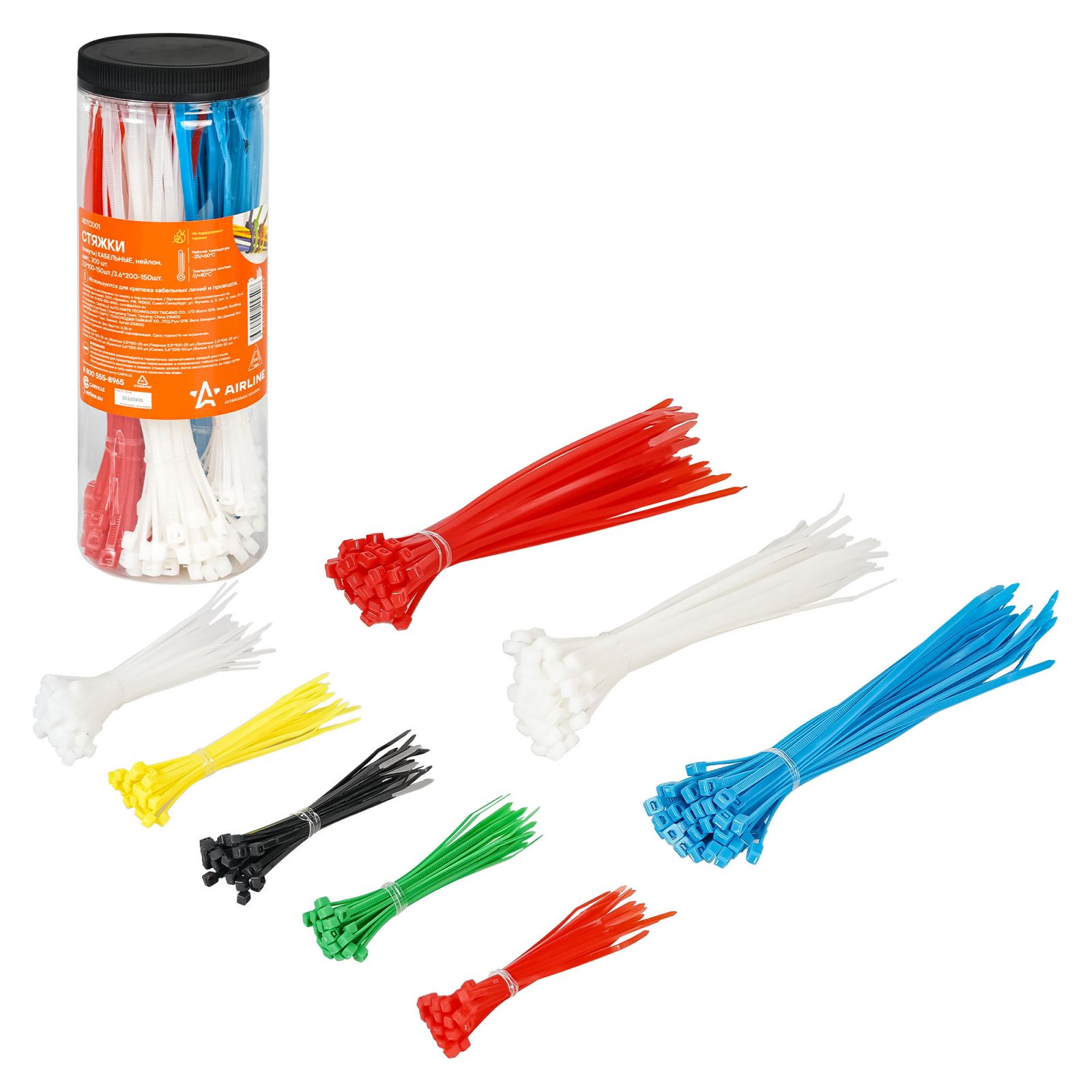 Стяжки (хомуты) кабельные, нейлон, цвет.,300 шт(2,5*100-150шт/3,6*200-150шт) (ADTC001)