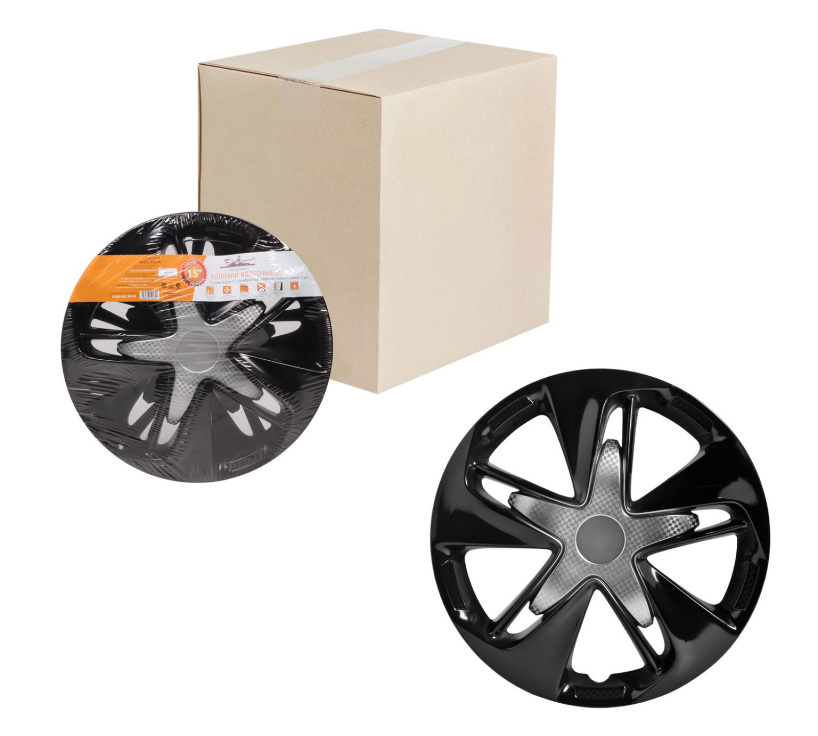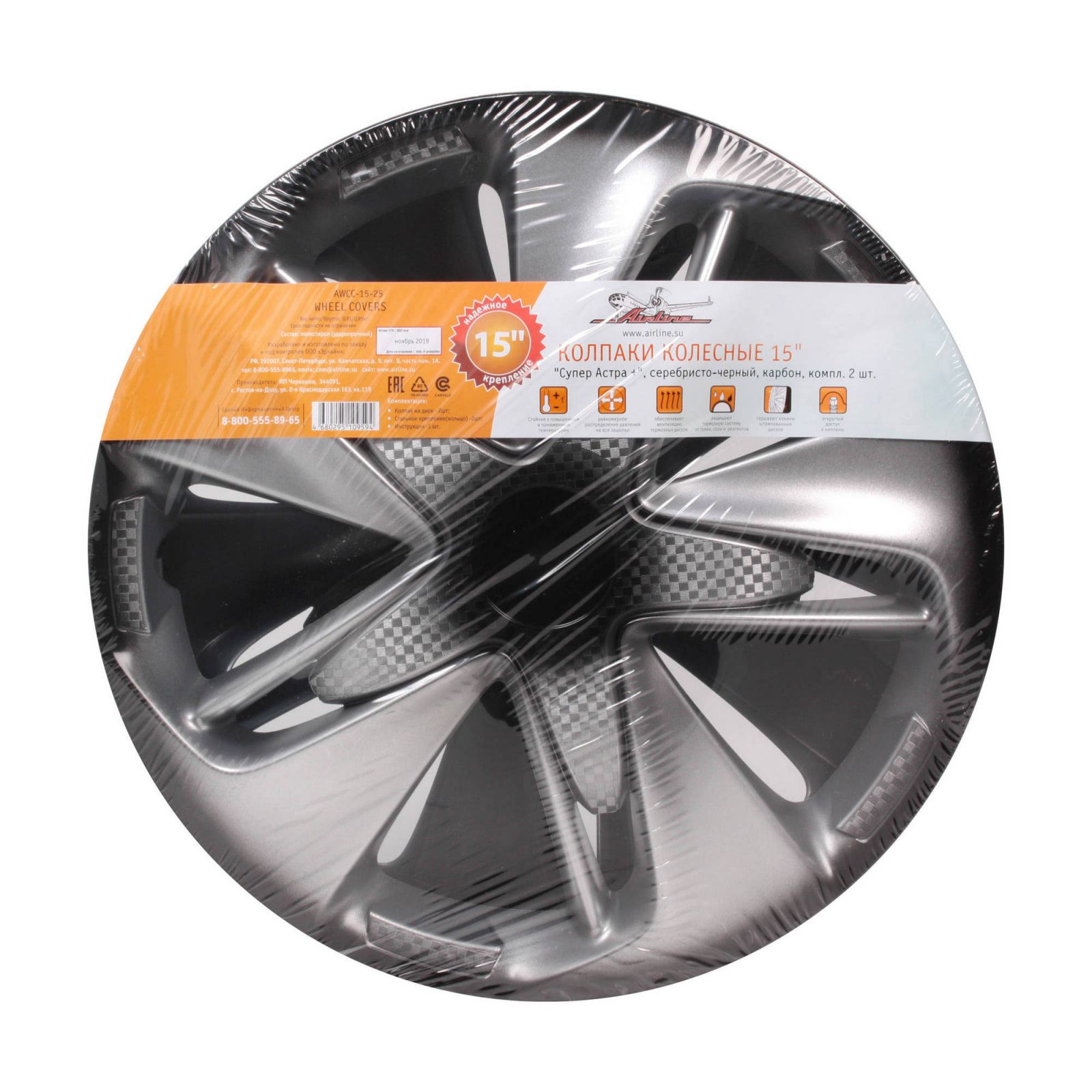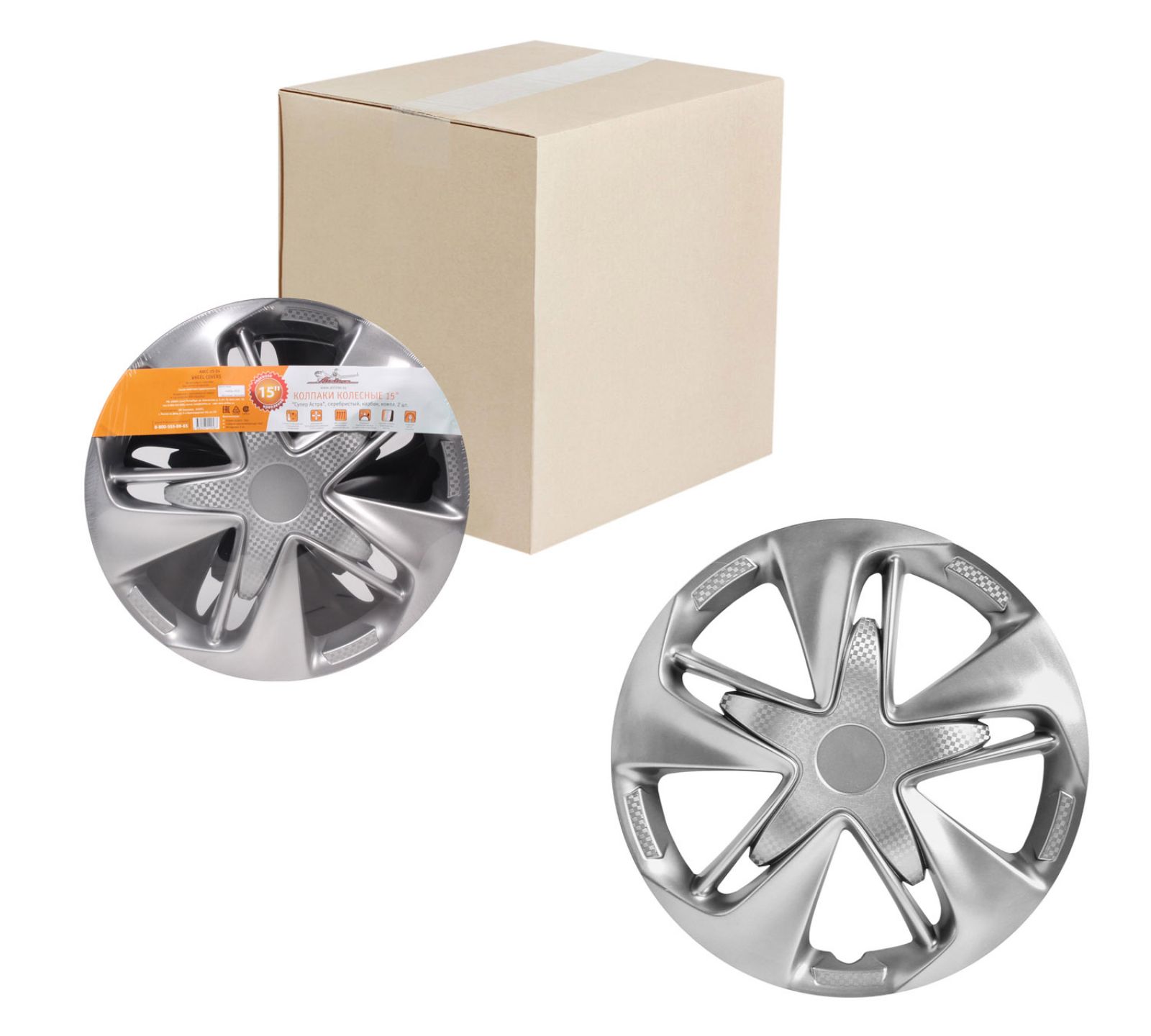 Колпаки колесные 15" "Супер Астра +", серебристо-черный, карбон, компл. 2 шт. (AWCC-15-25)