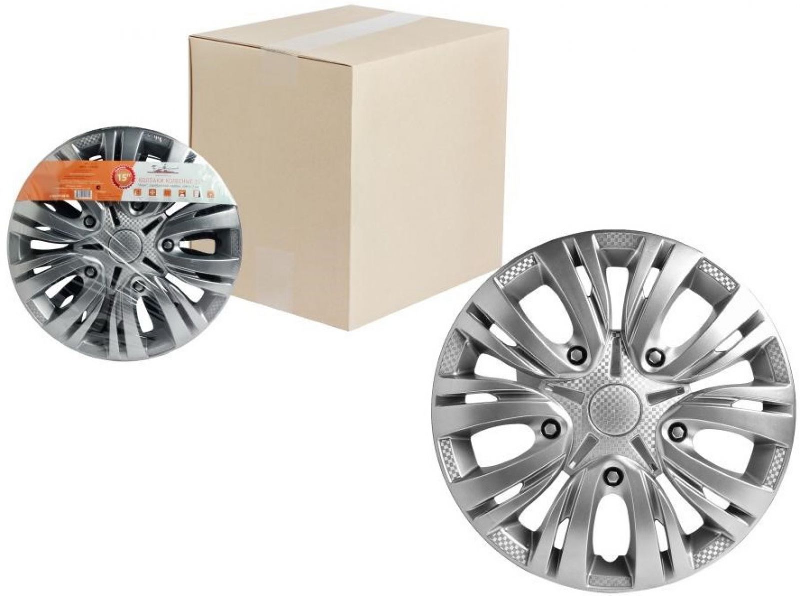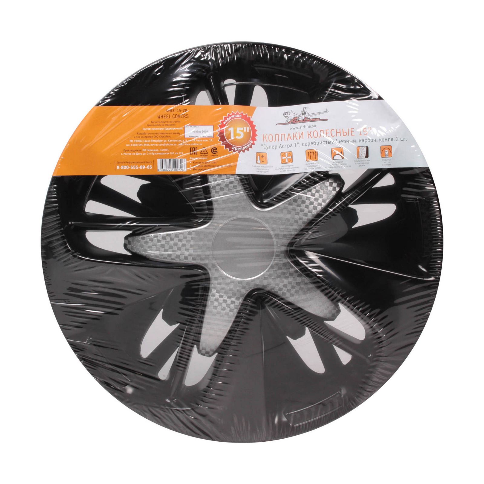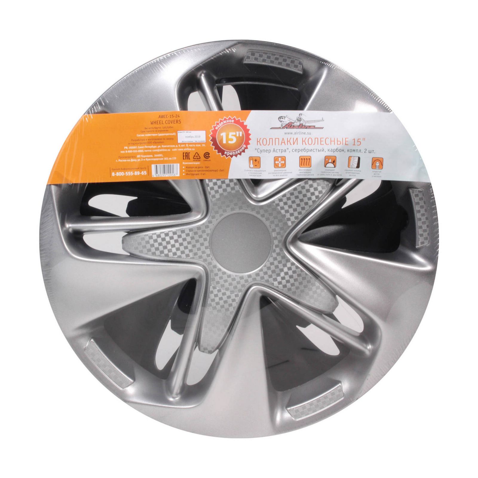 Колпаки колесные 15" "Супер Астра +", серебристо-черный, карбон, компл. 2 шт. (AWCC-15-25)