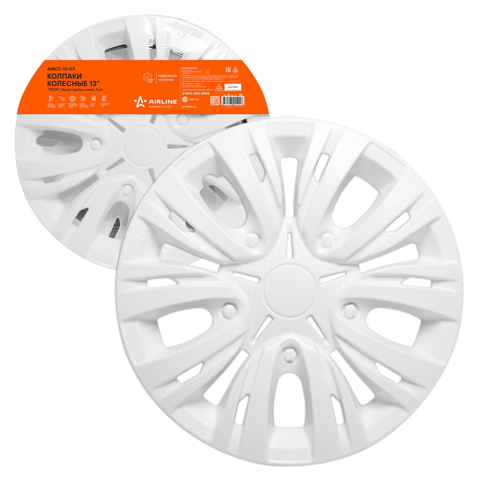 Колпаки колесные 13" "Лион", белый, карбон, компл. 2 шт. (AWCC-13-03)