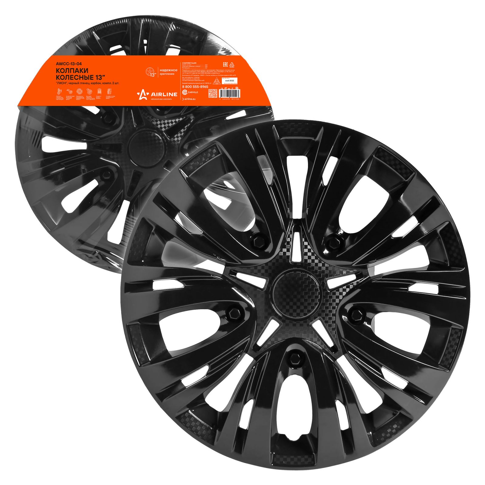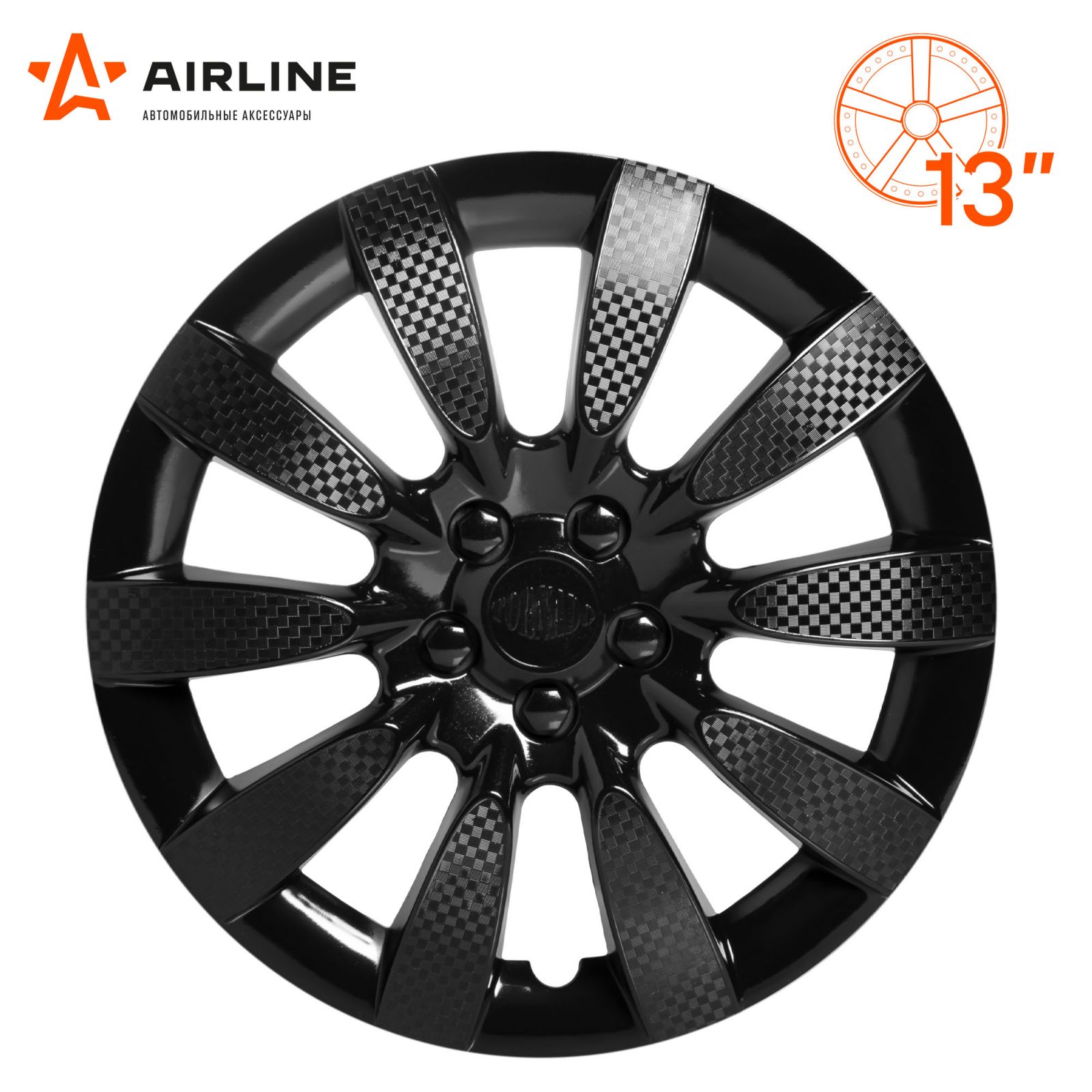 Колпаки колесные 13" "Лион", черный глянец, карбон, компл. 2 шт. (AWCC-13-04)