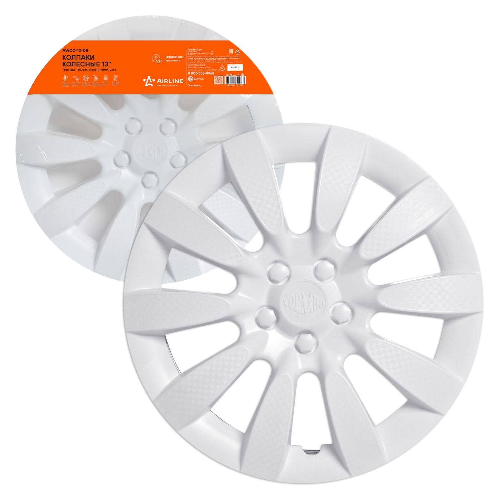 Колпаки колесные 13" "Торнадо", белый, карбон, компл. 2 шт. (AWCC-13-08)