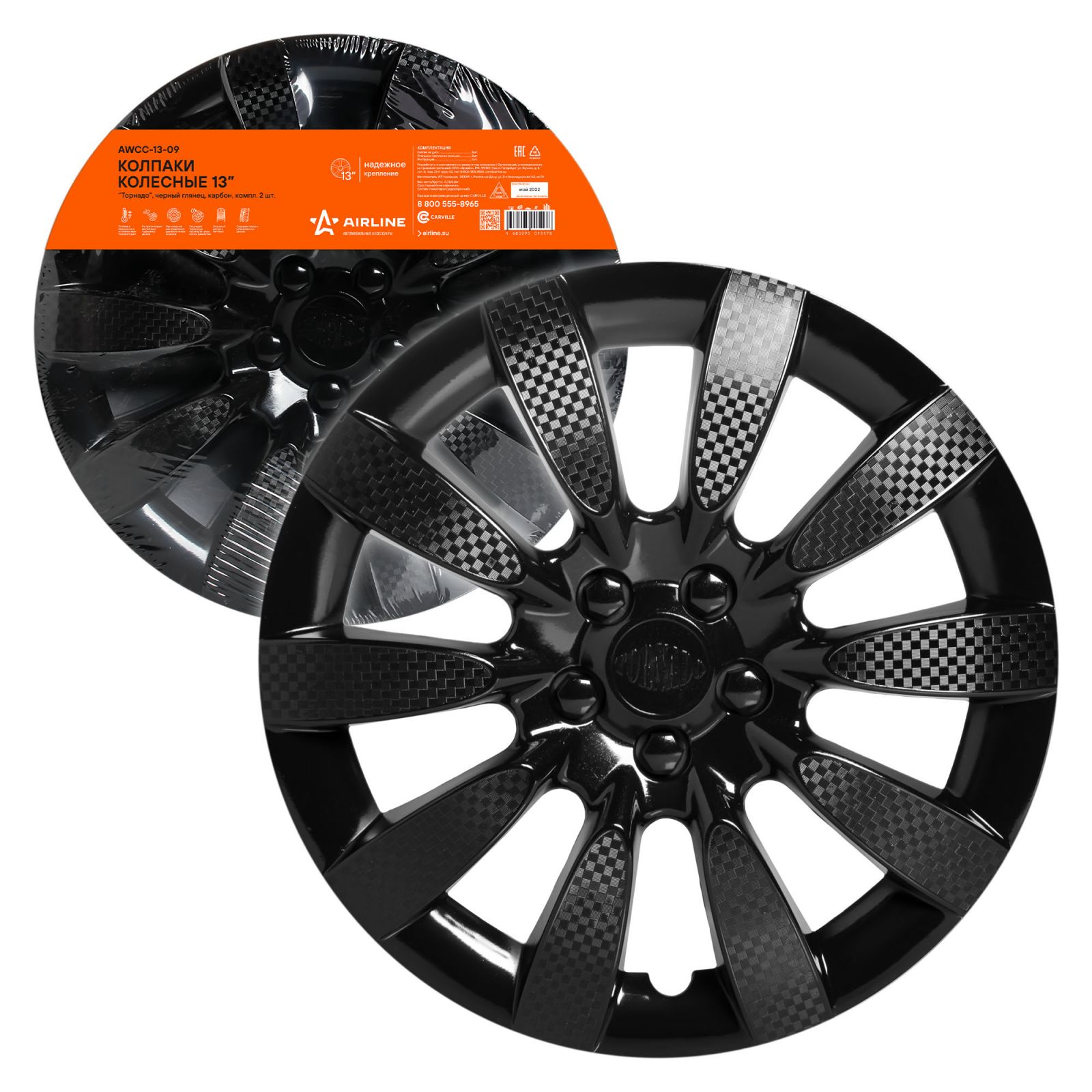 Колпаки колесные 13" "Торнадо", черный глянец, карбон, компл. 2 шт. (AWCC-13-09)