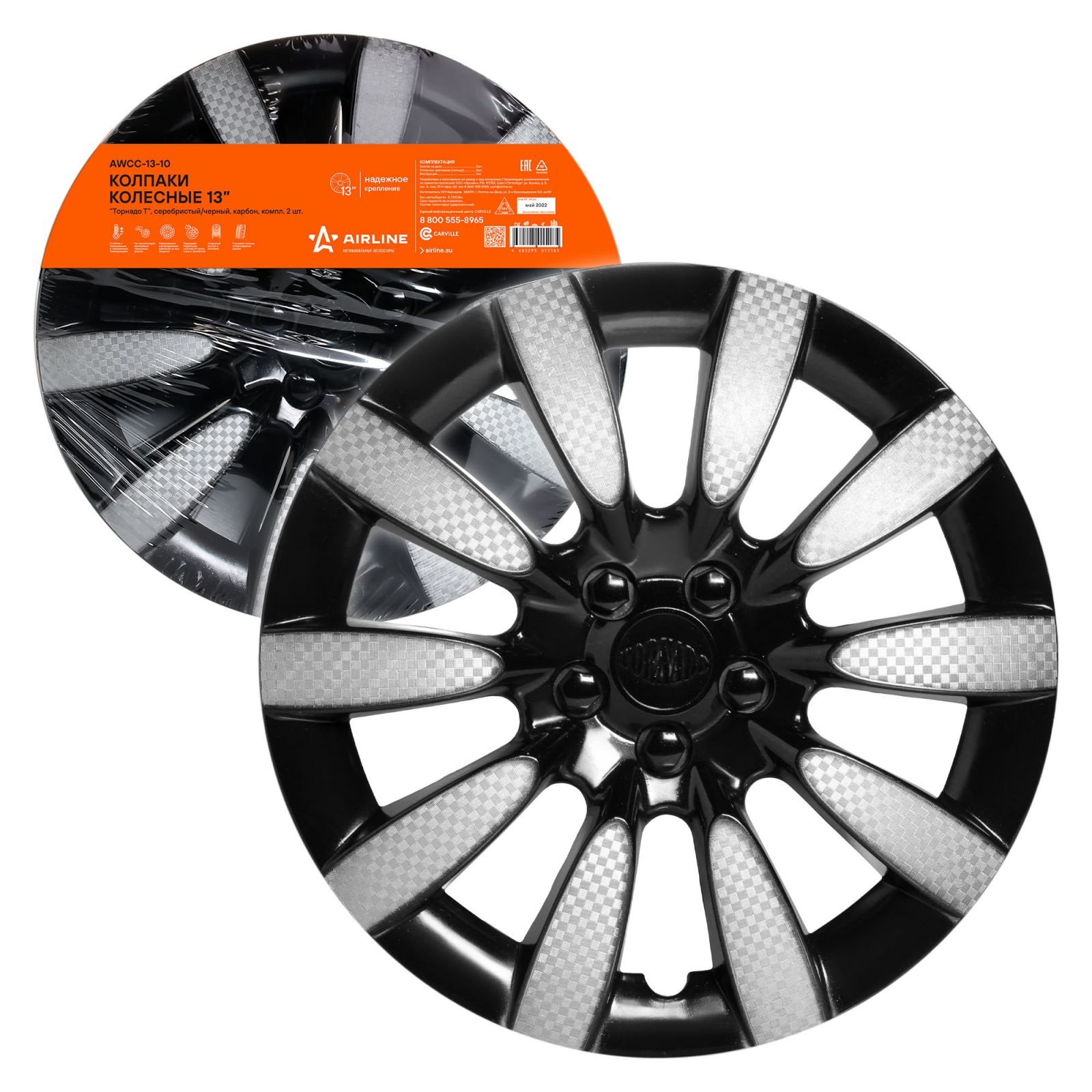 Колпаки колесные 13" "Торнадо Т", серебристый/черный, карбон, компл. 2 шт. (AWCC-13-10)