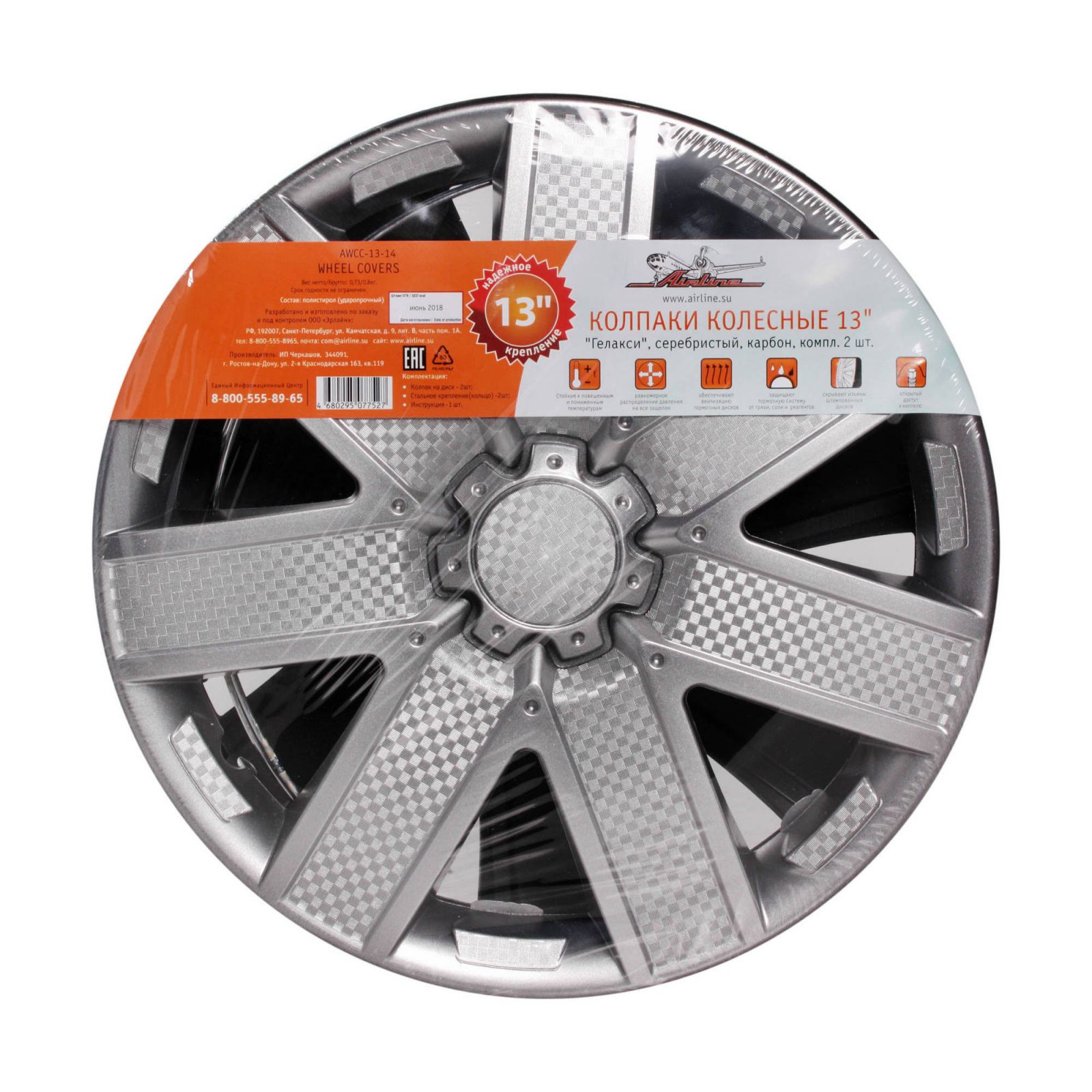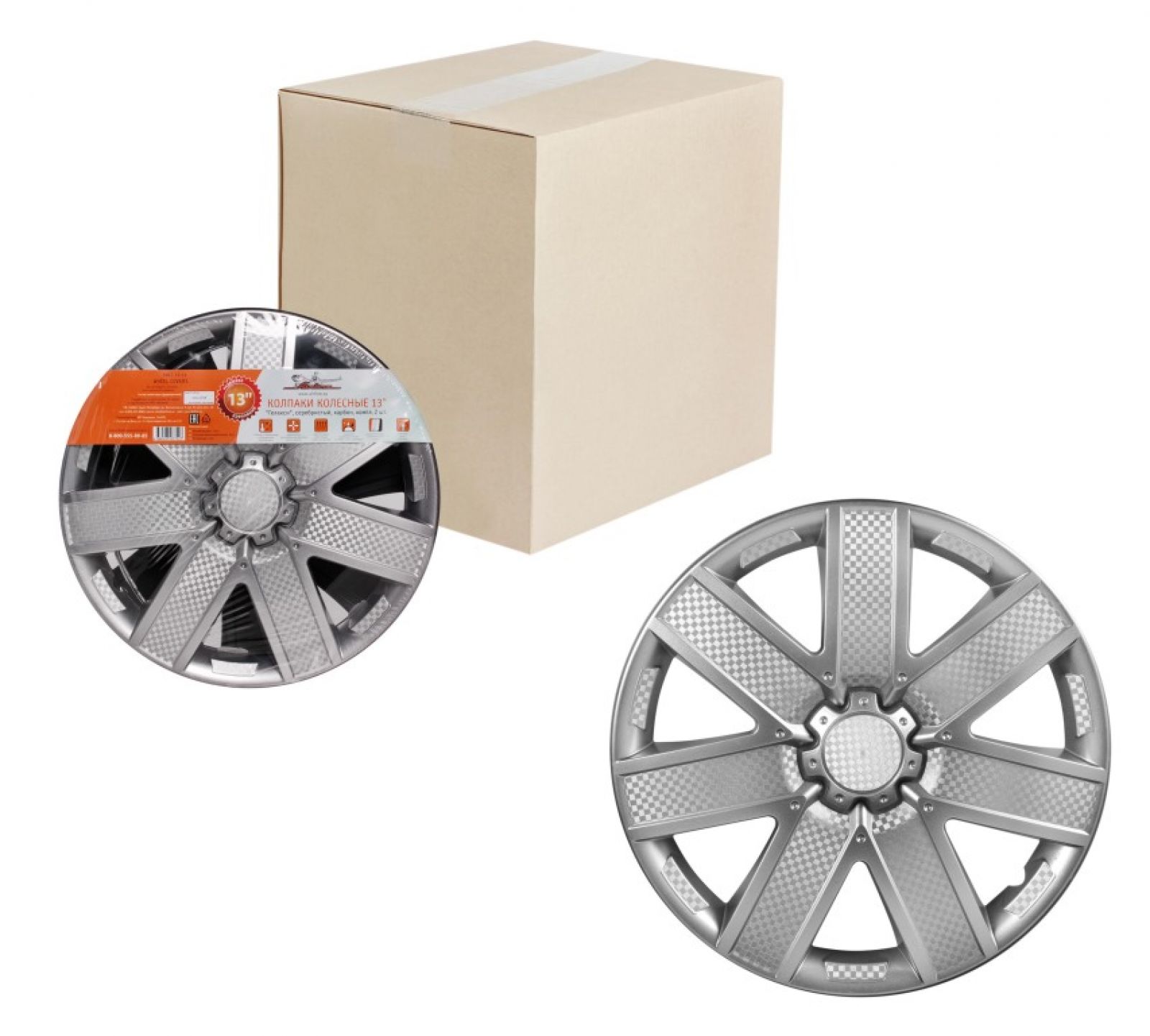 Колпаки колесные 13" "Лион", серебристый, карбон, компл. 2 шт. (AWCC-13-01)