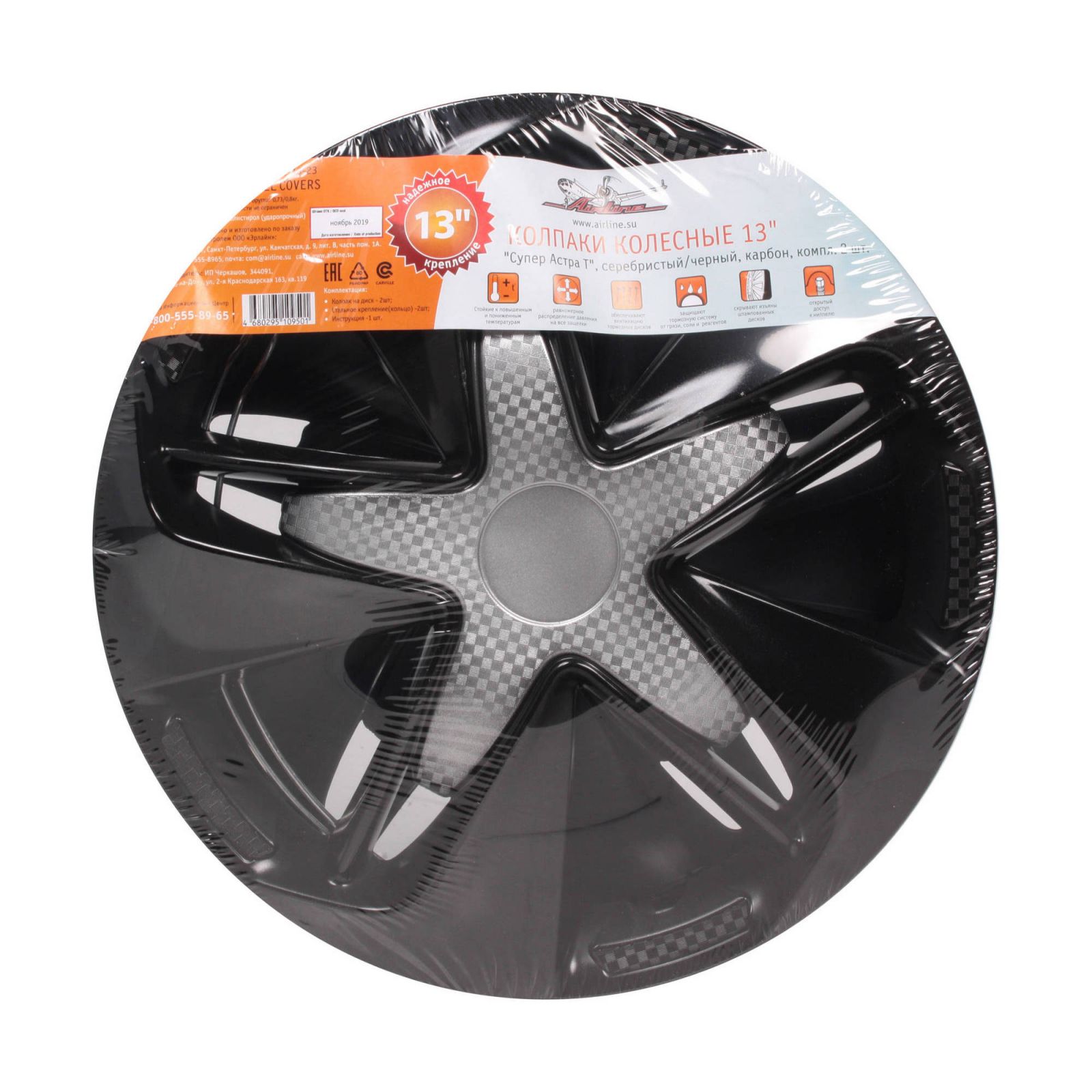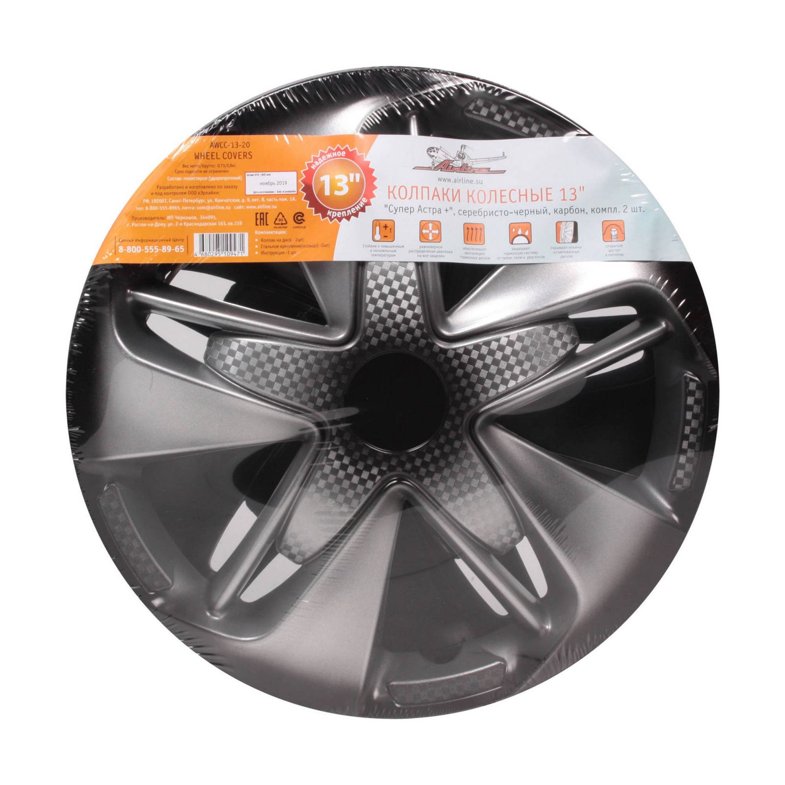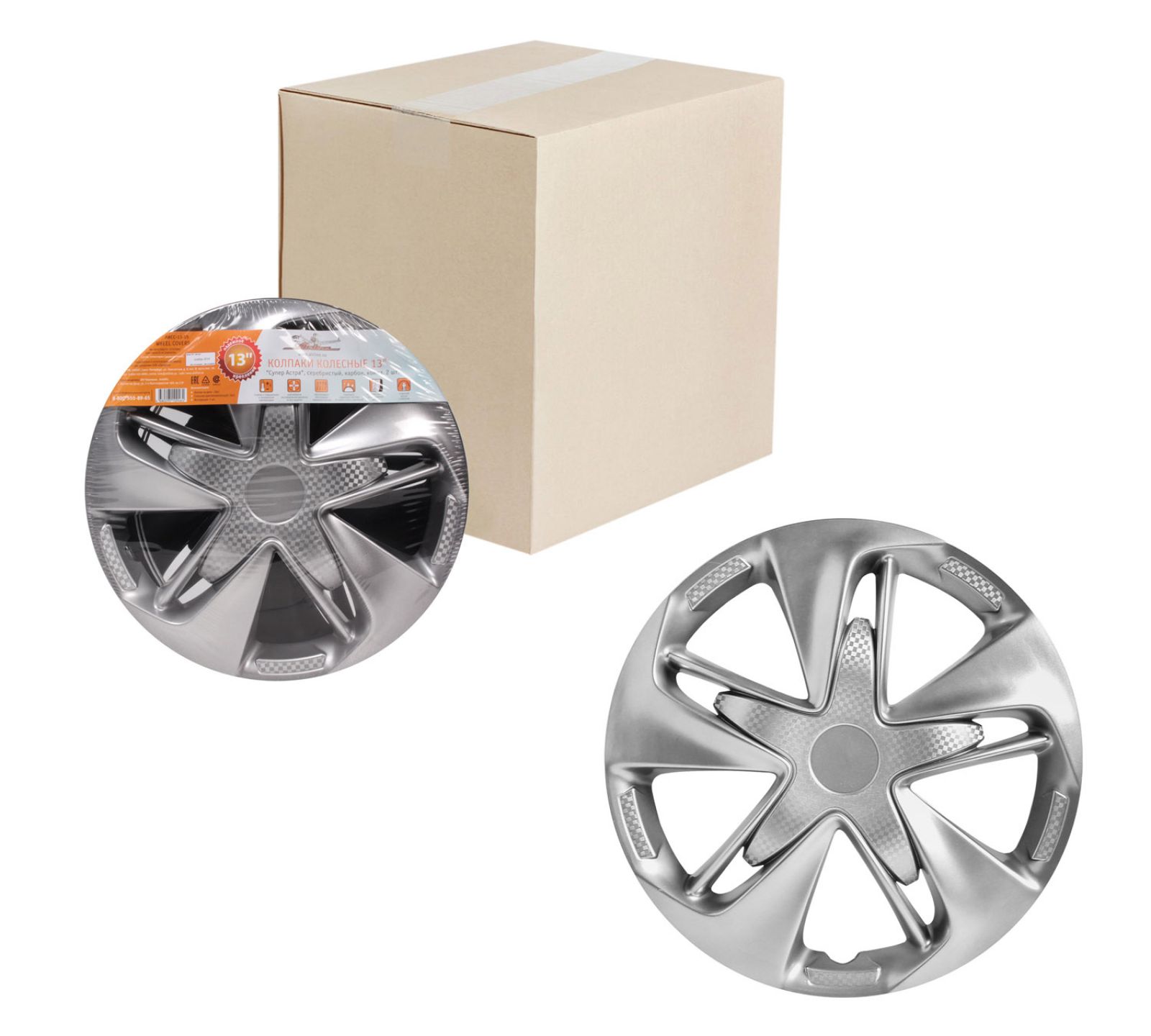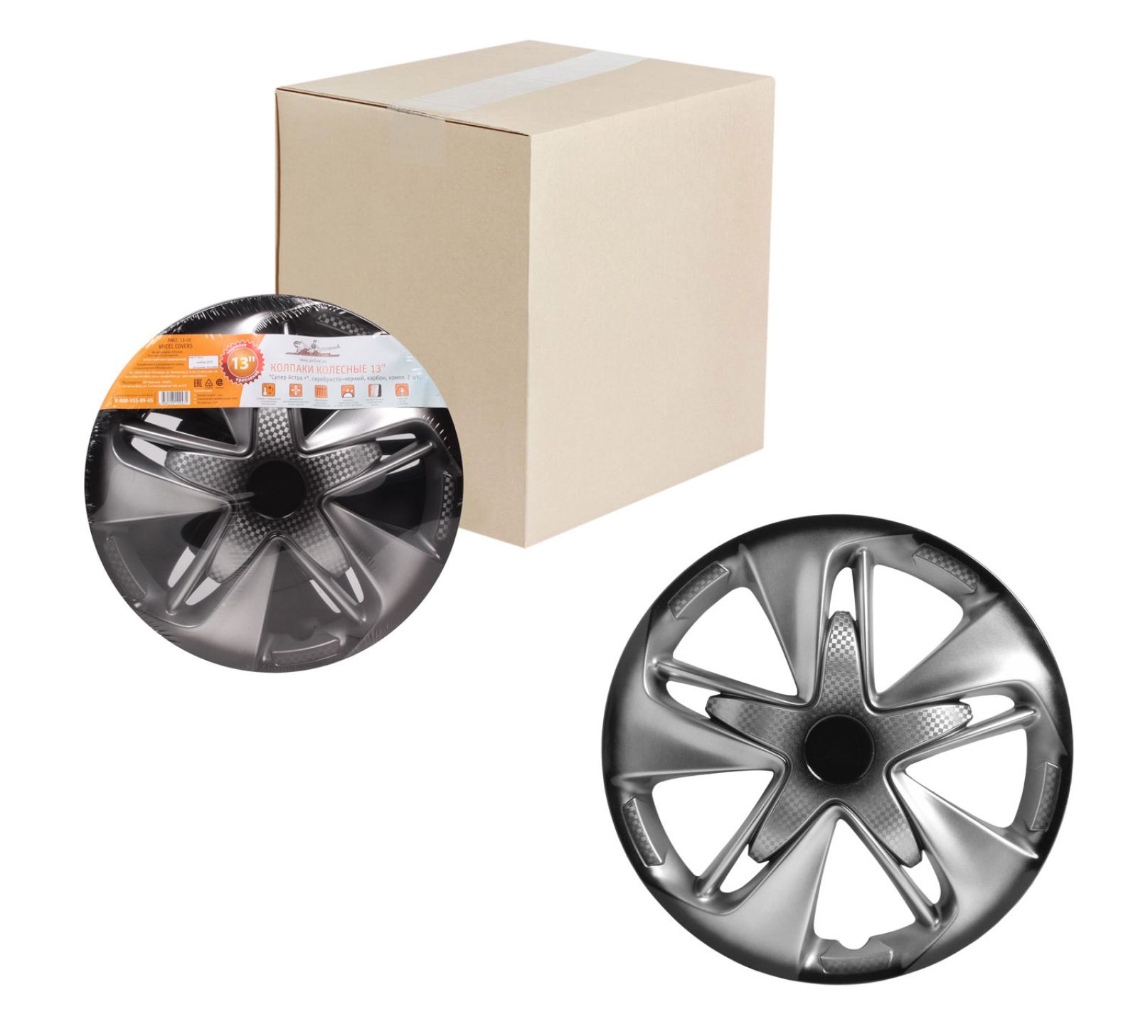 Колпаки колесные 13" "Супер Астра +", серебристо-черный, карбон, компл. 2 шт. (AWCC-13-20)