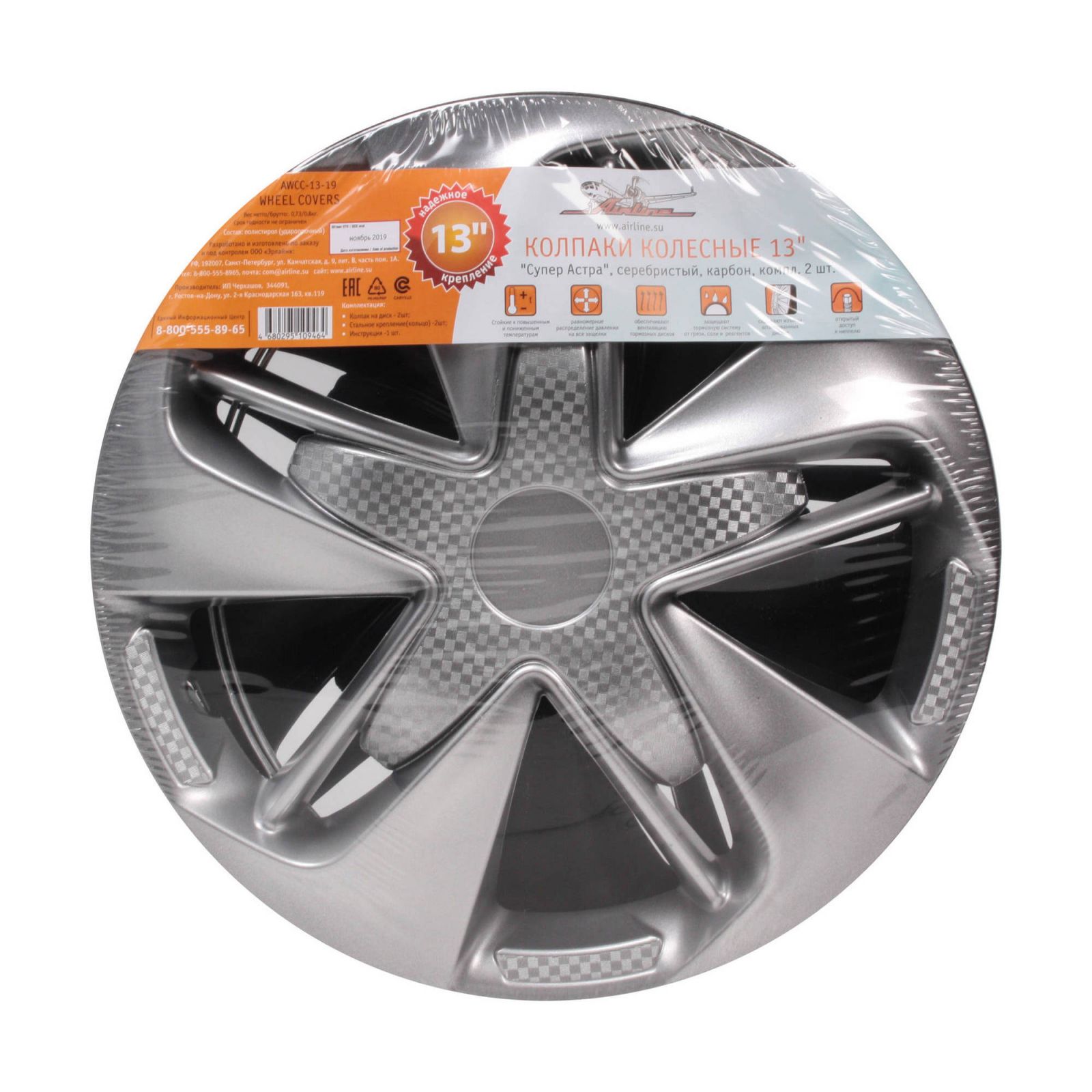 Колпаки колесные 13" "Супер Астра", серебристый, карбон, компл. 2 шт. (AWCC-13-19)