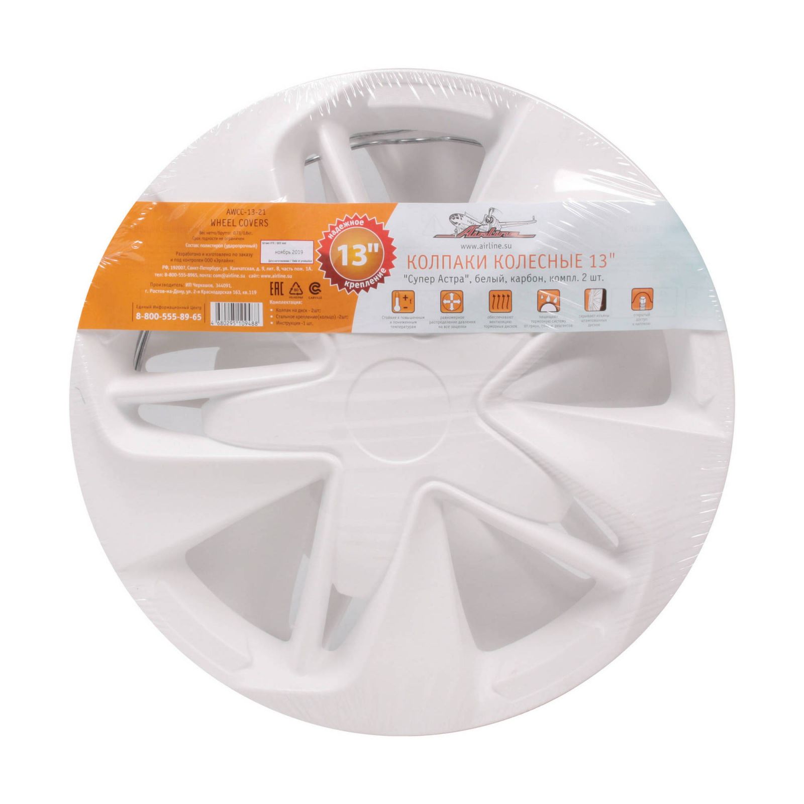 Колпаки колесные 13" "Супер Астра", белый, карбон, компл. 2 шт. (AWCC-13-21)
