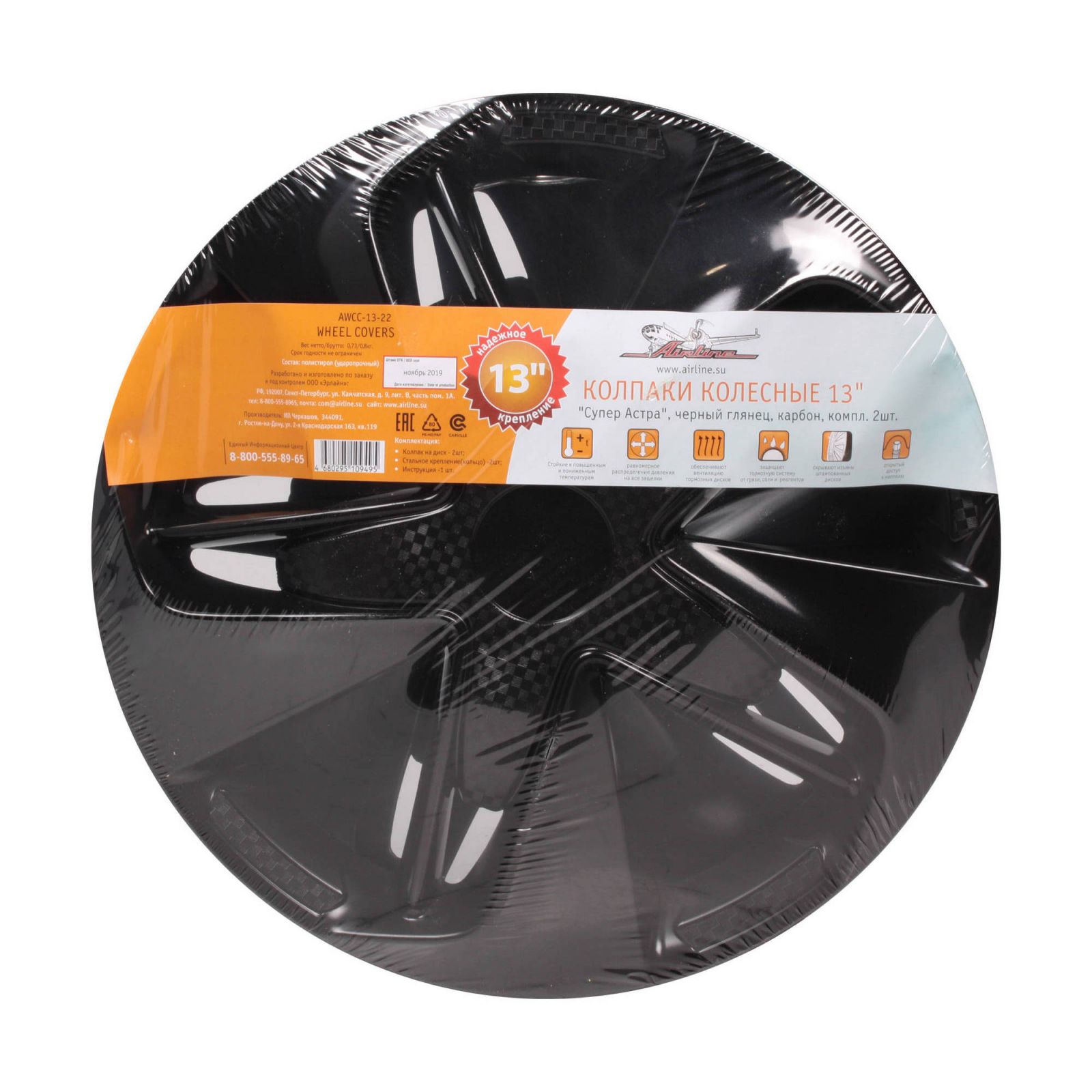Колпаки колесные 13" "Супер Астра", черный глянец, карбон, компл. 2шт. (AWCC-13-22)