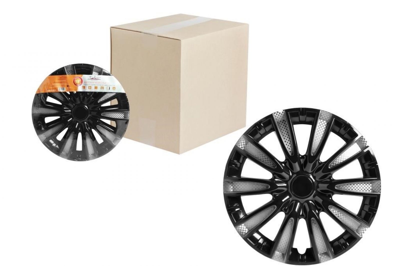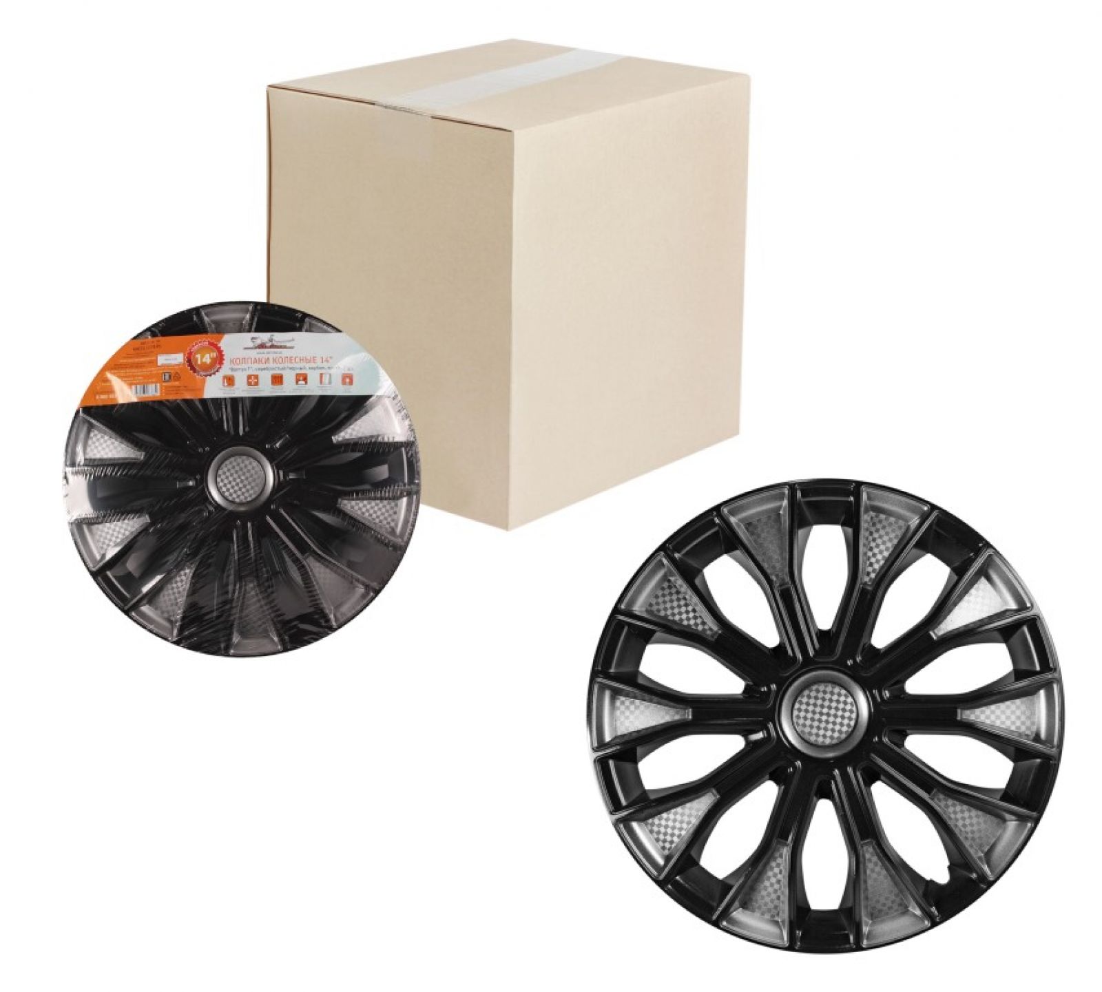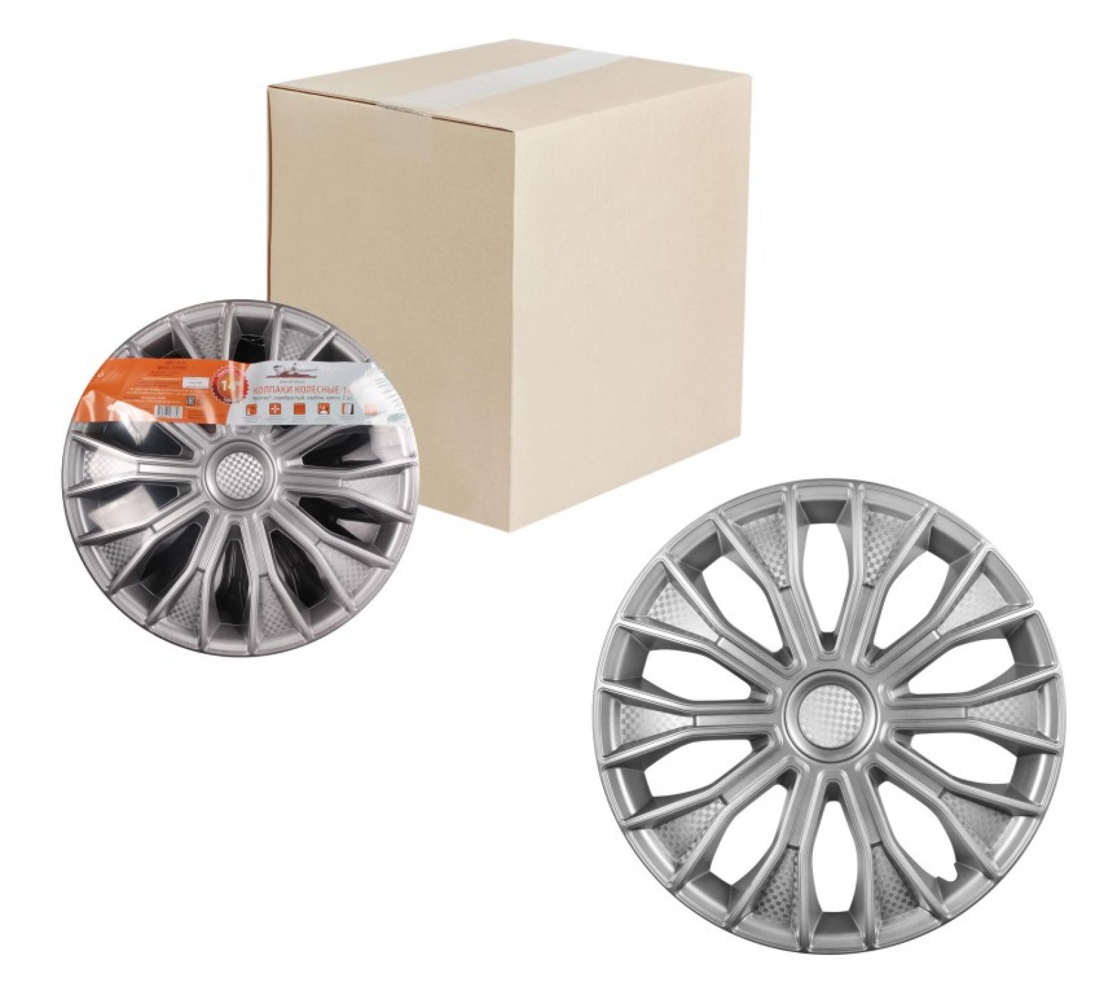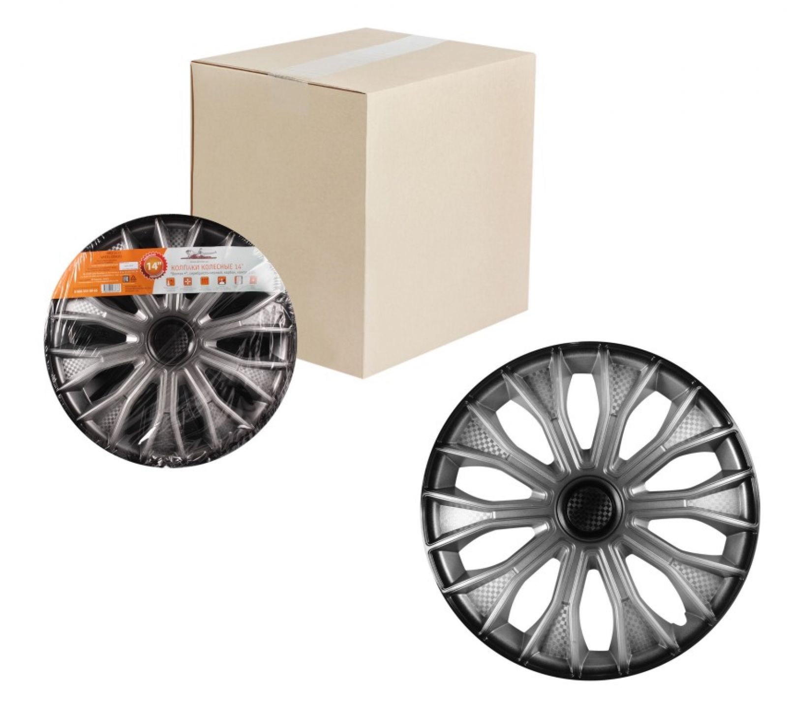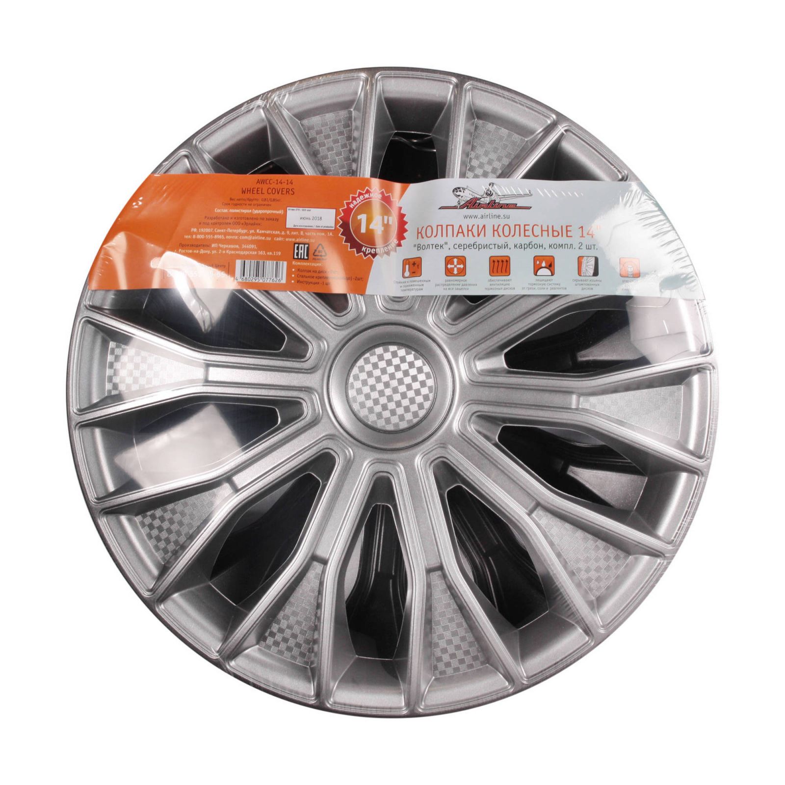 Колпаки колесные 14" "Волтек +", серебристо-черный, карбон, компл. 2 шт. (AWCC-14-15)