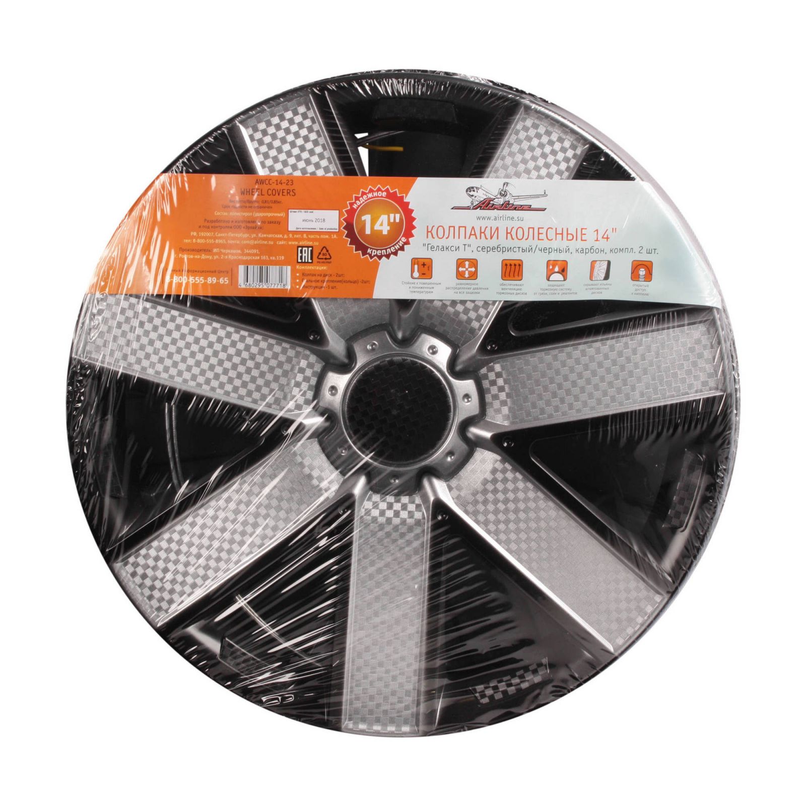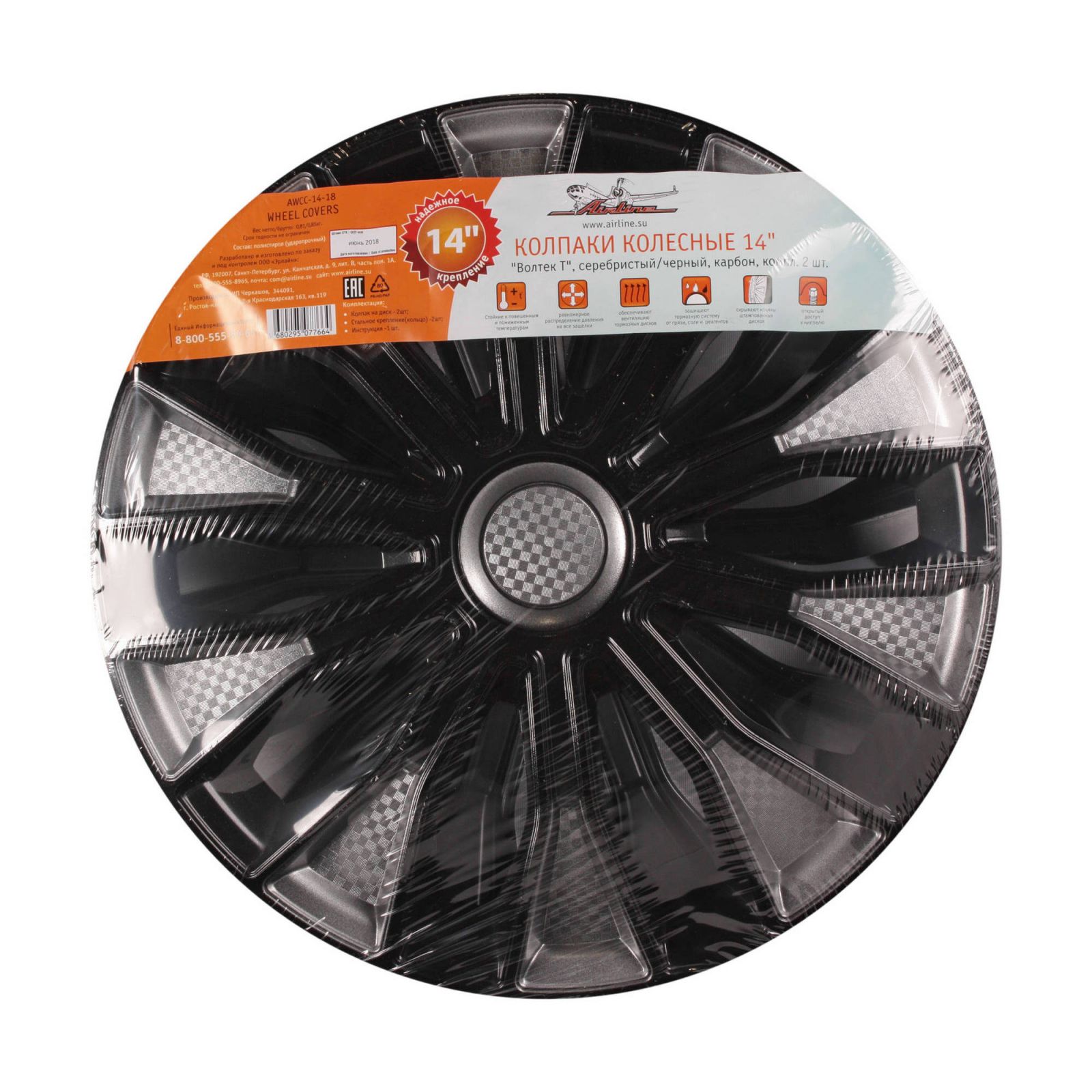 Колпаки колесные 14" "Волтек Т", серебристый/черный, карбон, компл. 2 шт. (AWCC-14-18)