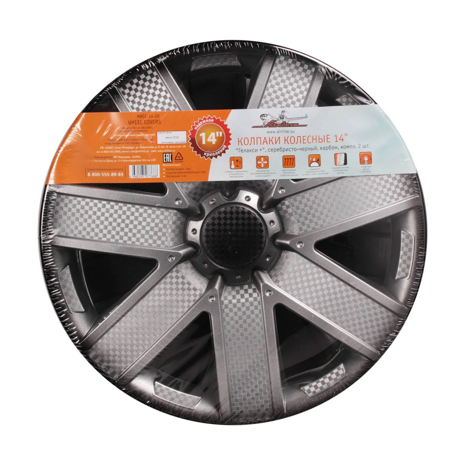 Колпаки колесные 14" "Лион +", серебристо-черный, карбон, компл. 2 шт. (AWCC-14-02)