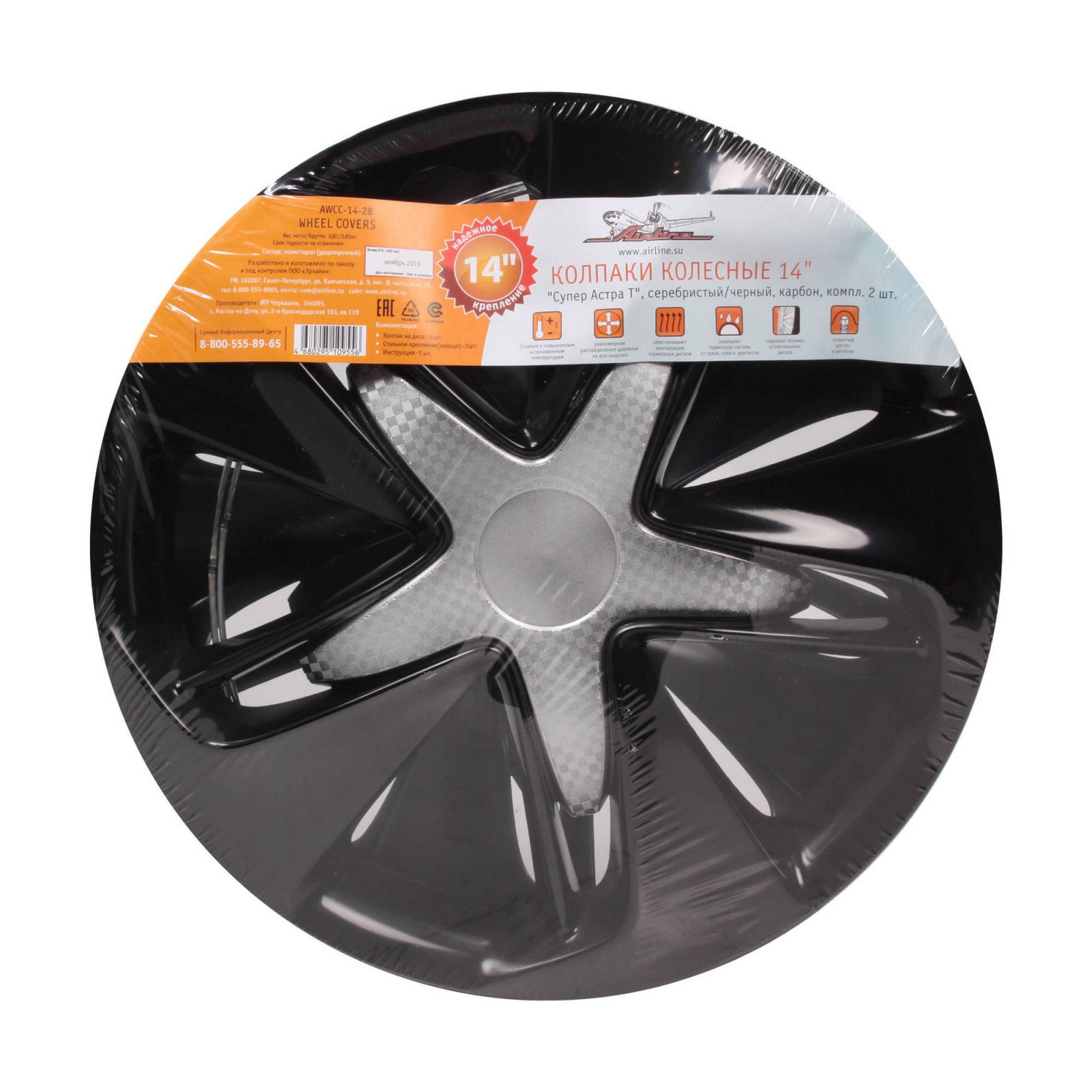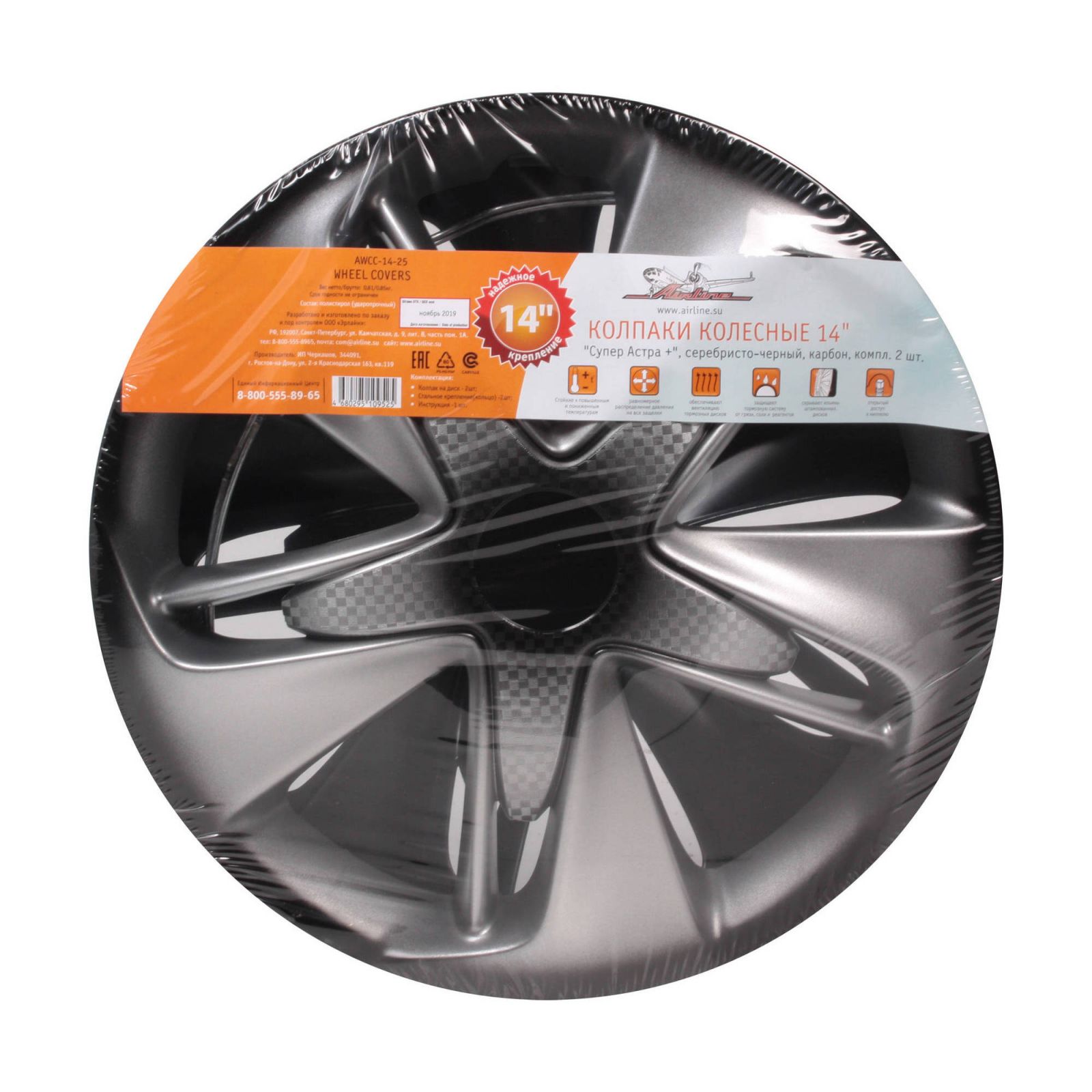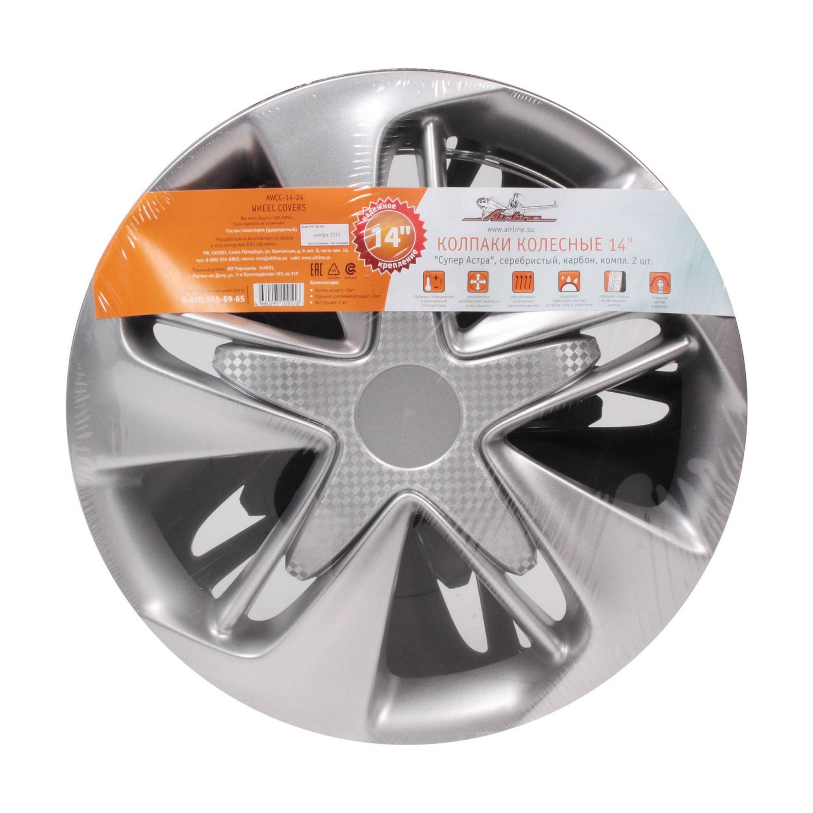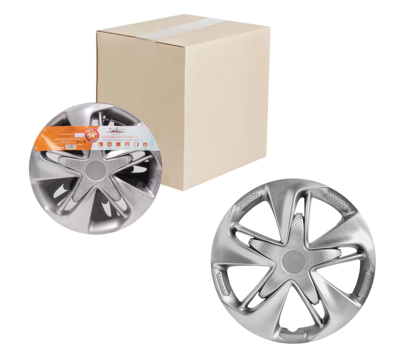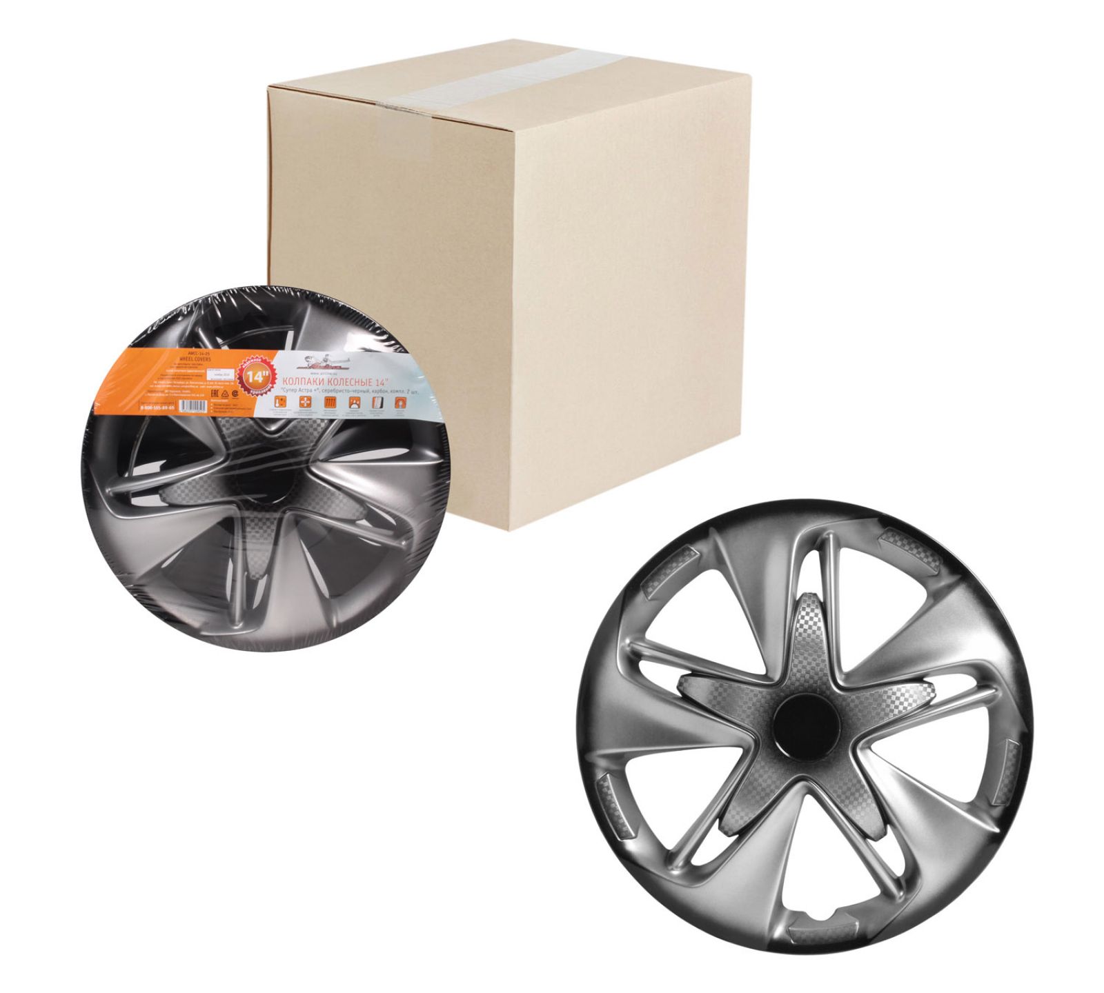 Колпаки колесные 14" "Супер Астра +", серебристо-черный, карбон, компл. 2 шт. (AWCC-14-25)
