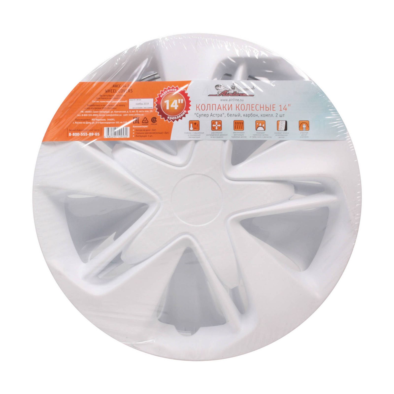 Колпаки колесные 14" "Супер Астра", белый, карбон, компл. 2 шт. (AWCC-14-26)