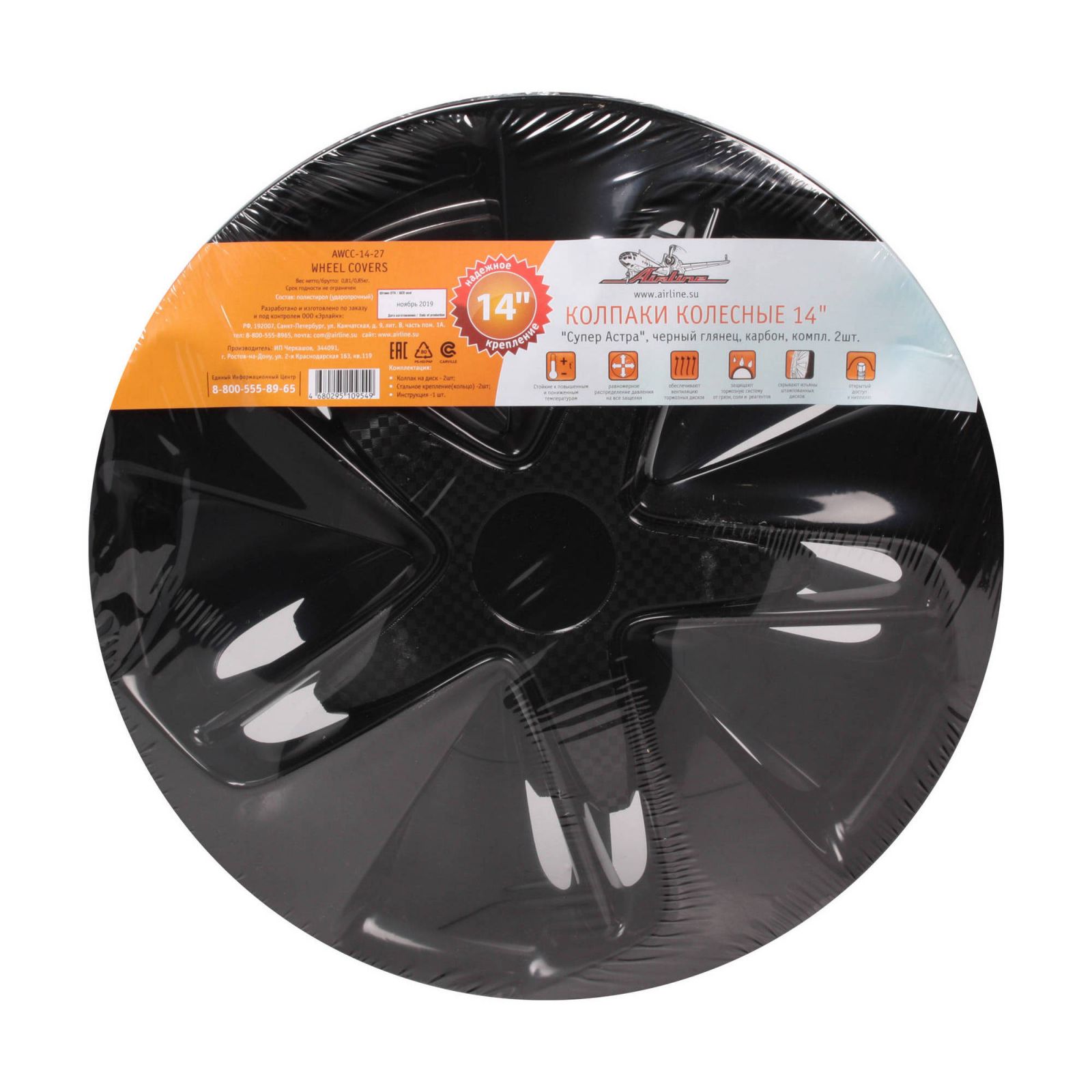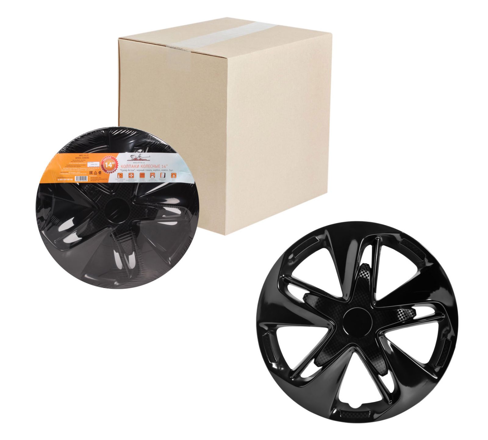 Колпаки колесные 14" "Супер Астра", черный глянец, карбон, компл. 2шт. (AWCC-14-27)