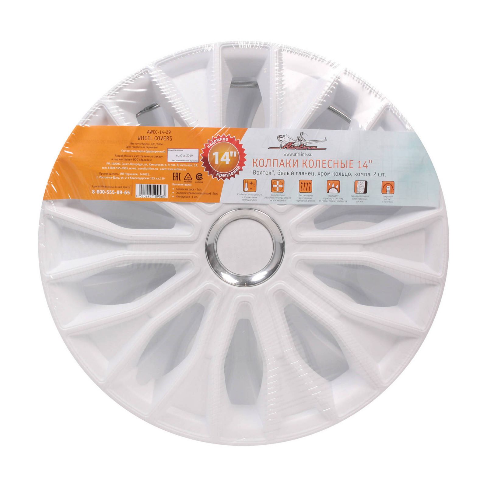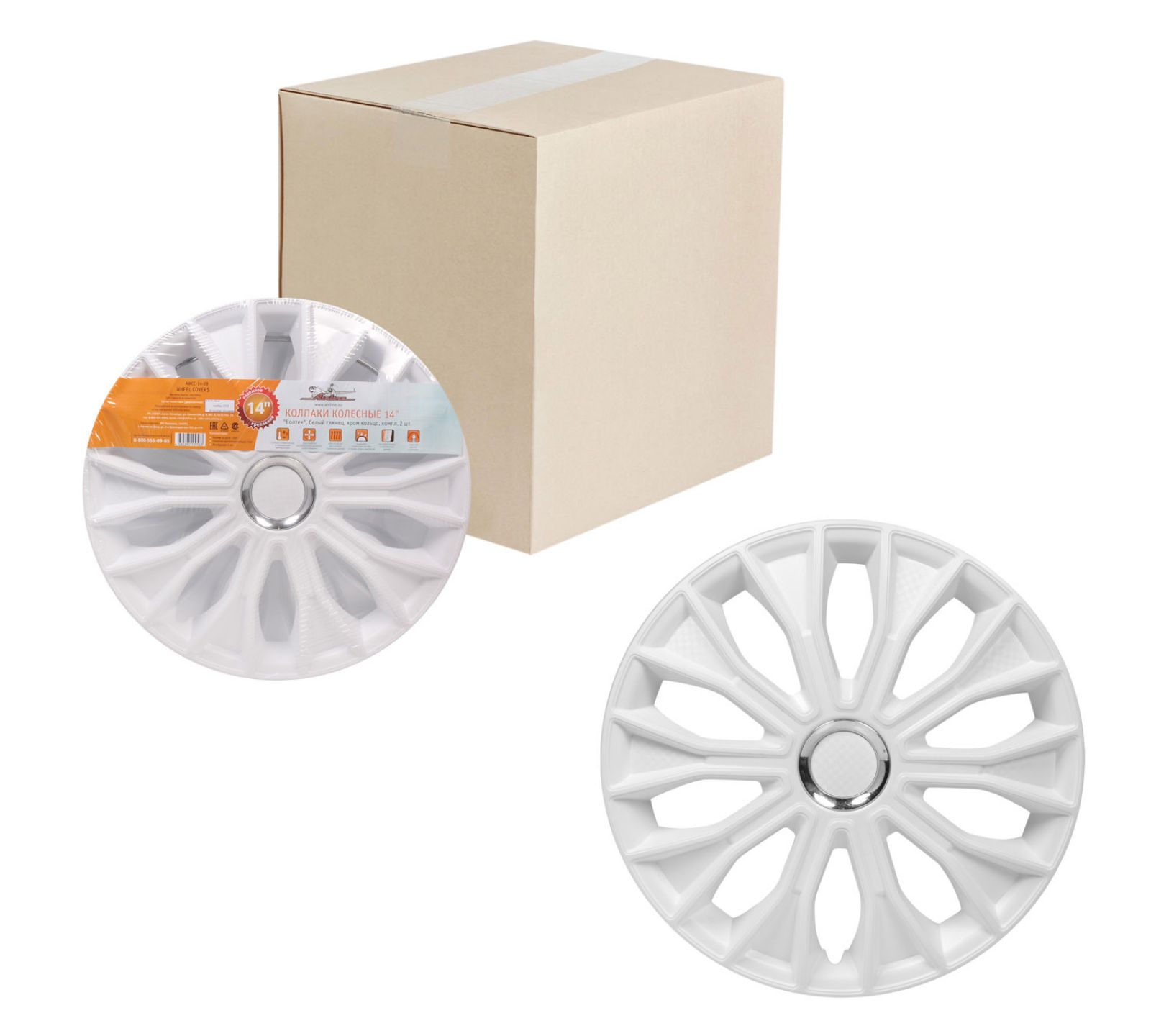 Колпаки колесные 14" "Волтек", белый глянец, хром кольцо, компл. 2 шт. (AWCC-14-29)