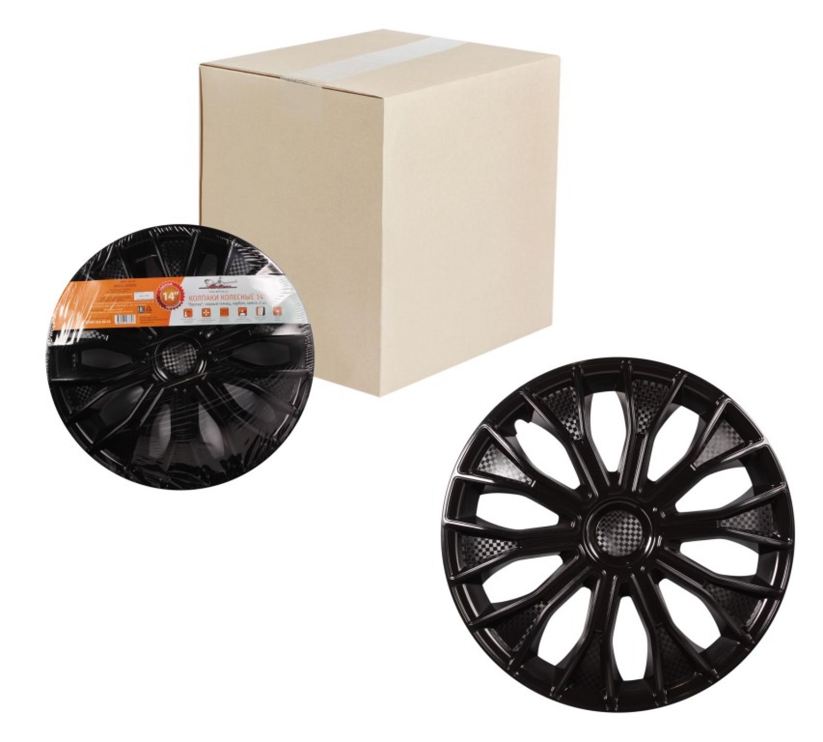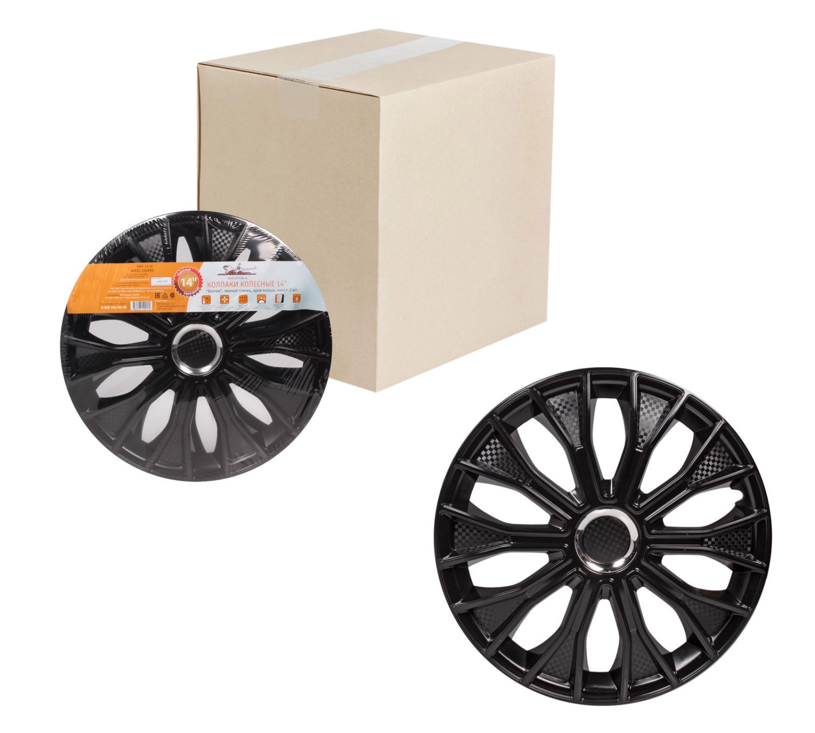 Колпаки колесные 14" "Волтек", черный глянец, карбон, компл. 2 шт. (AWCC-14-17)