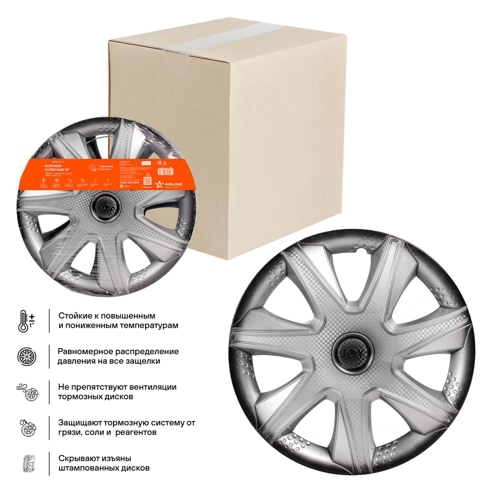 Колпаки колесные 14" "Джой +", серебристо-черный, карбон, компл. 2 шт. (AWCC-14-32)