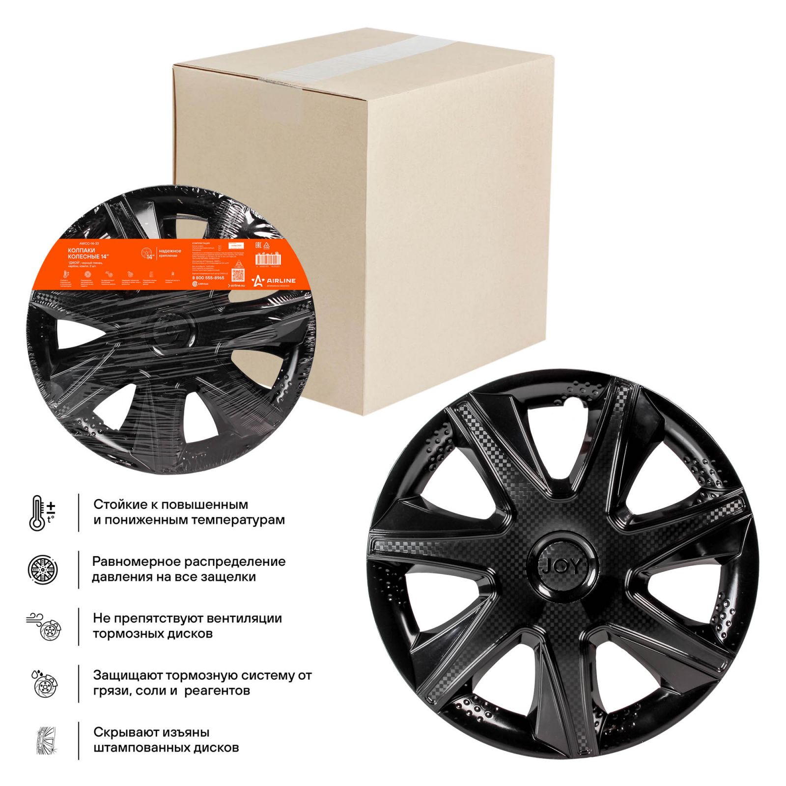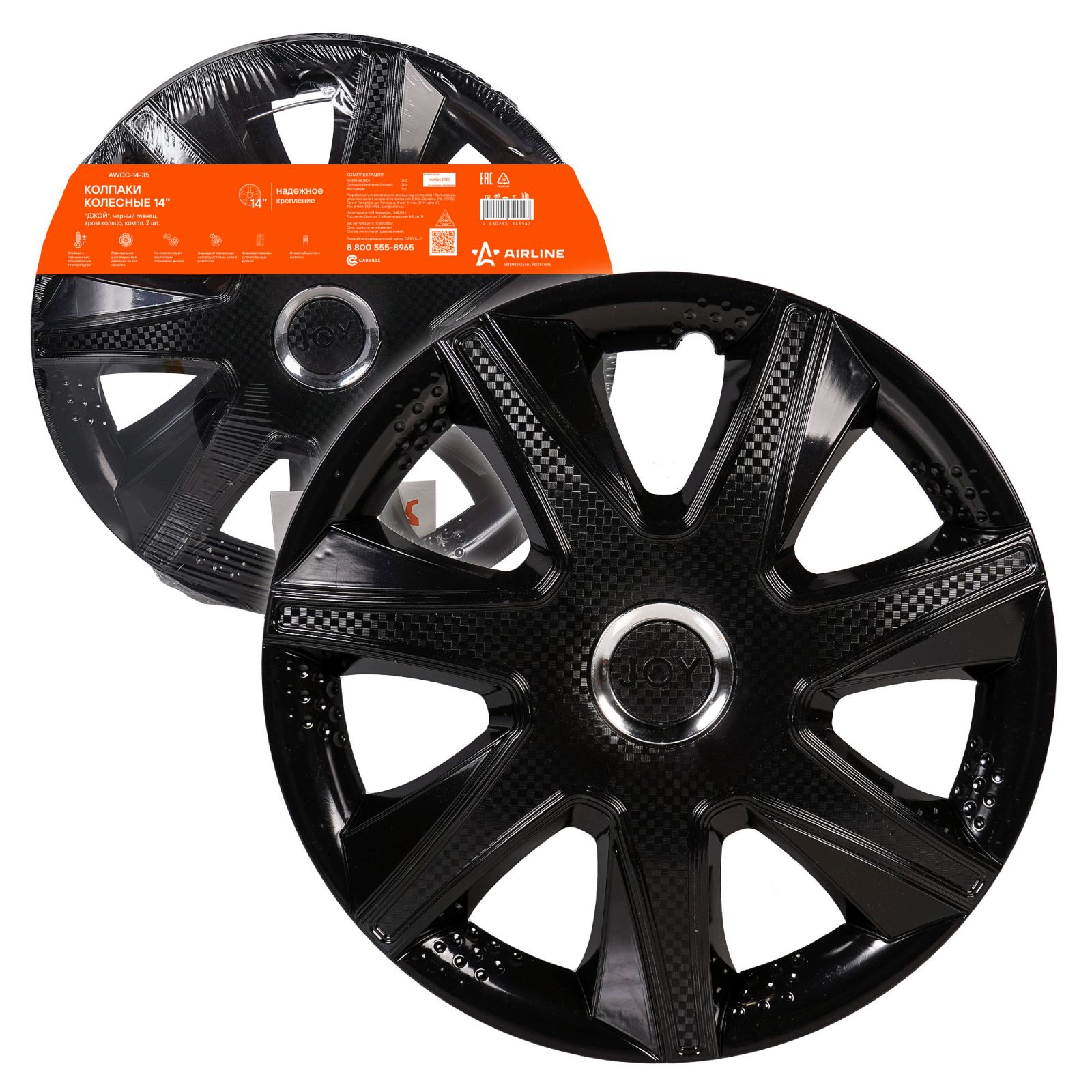 Колпаки колесные 14" "Джой", черный глянец, карбон, компл. 2 шт. (AWCC-14-33)