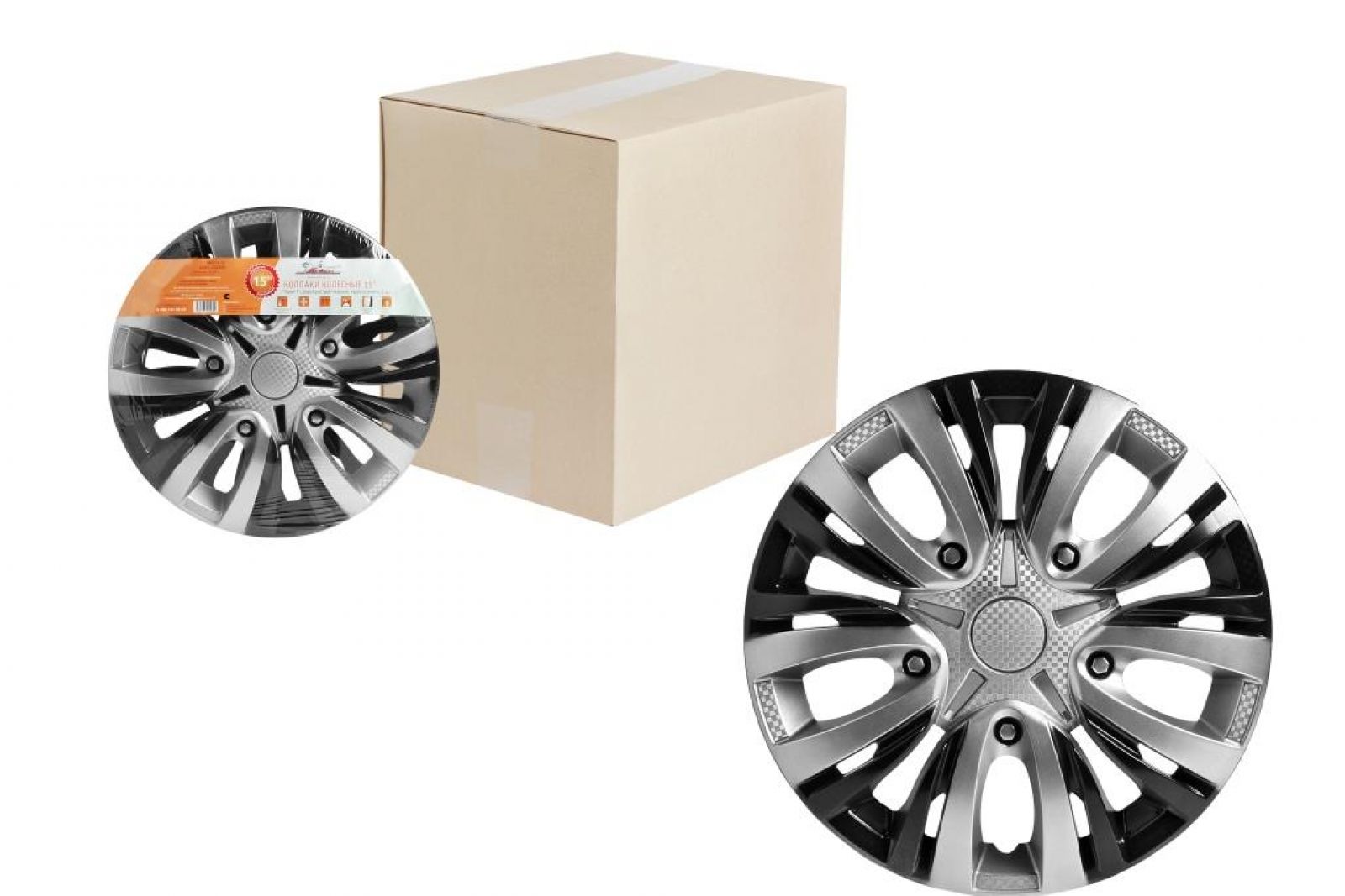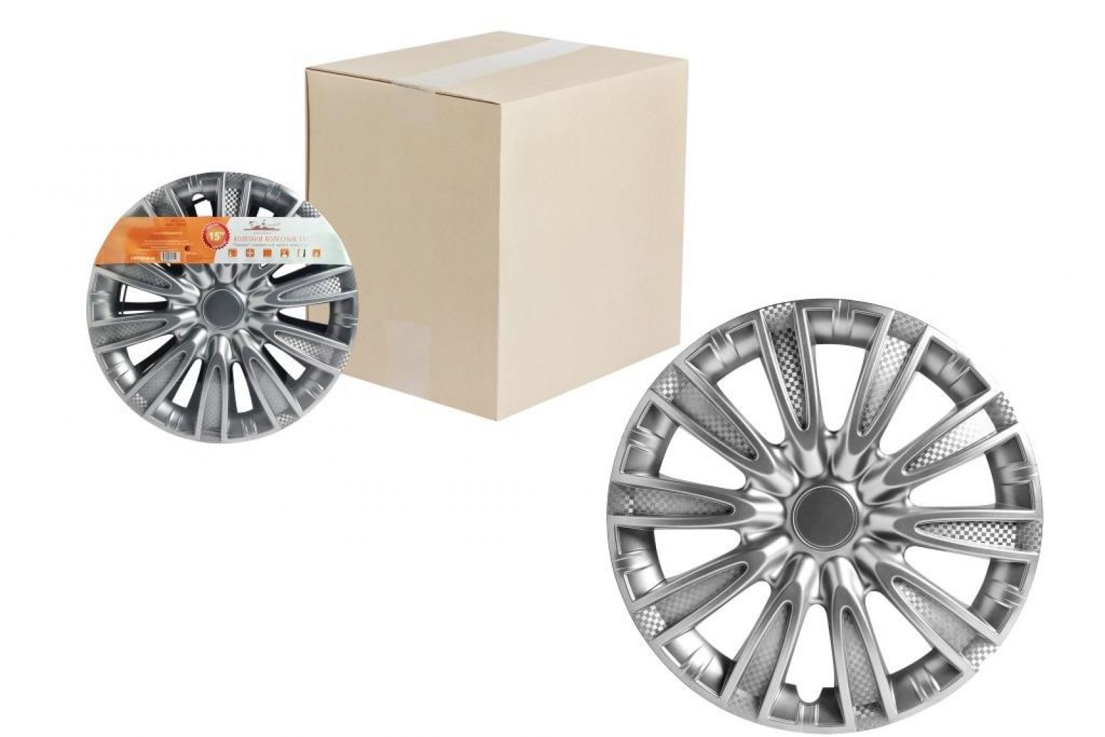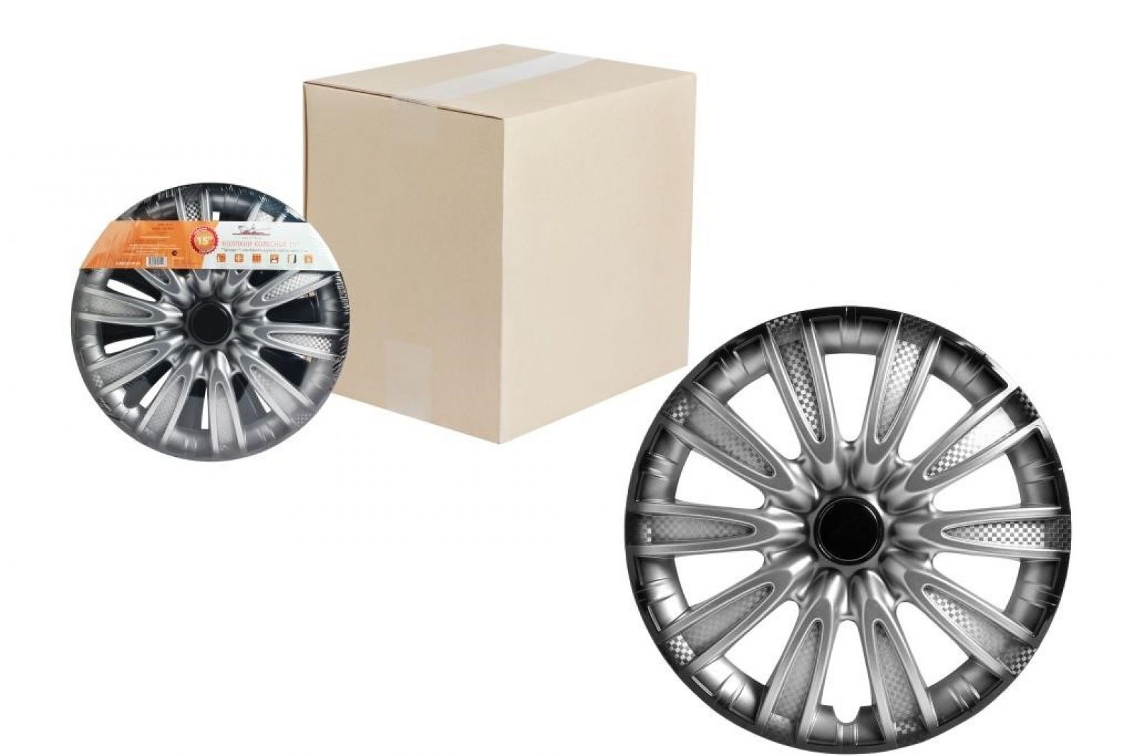 Колпаки колесные 15" "Лион +", серебристо-черный, карбон, компл. 2 шт. (AWCC-15-02)