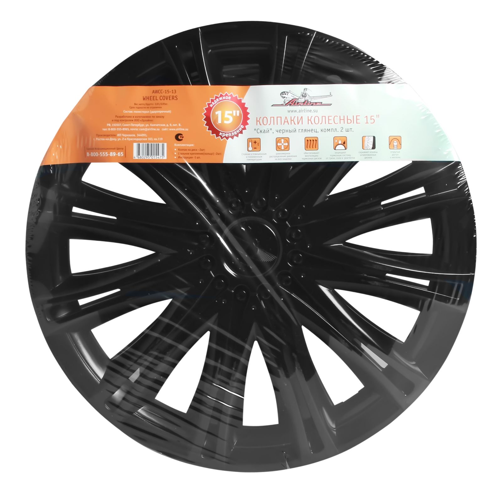 Колпаки колесные 15" "Скай" черный глянец, компл. 2 шт. (AWCC-15-13)