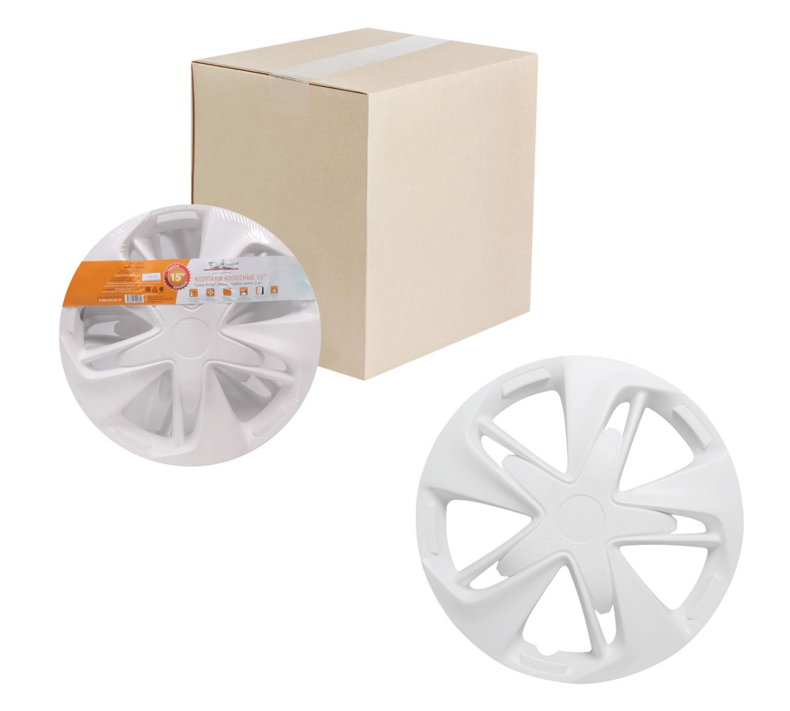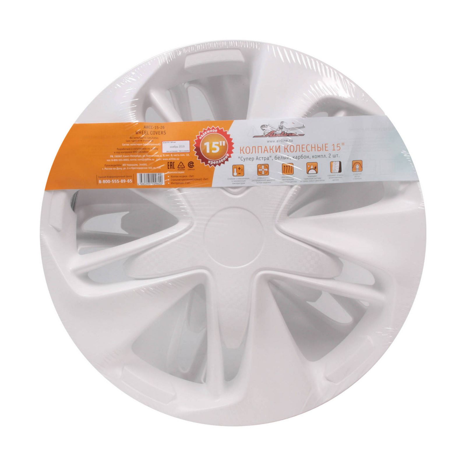 Колпаки колесные 15" "Супер Астра", белый, карбон, компл. 2 шт. (AWCC-15-26)