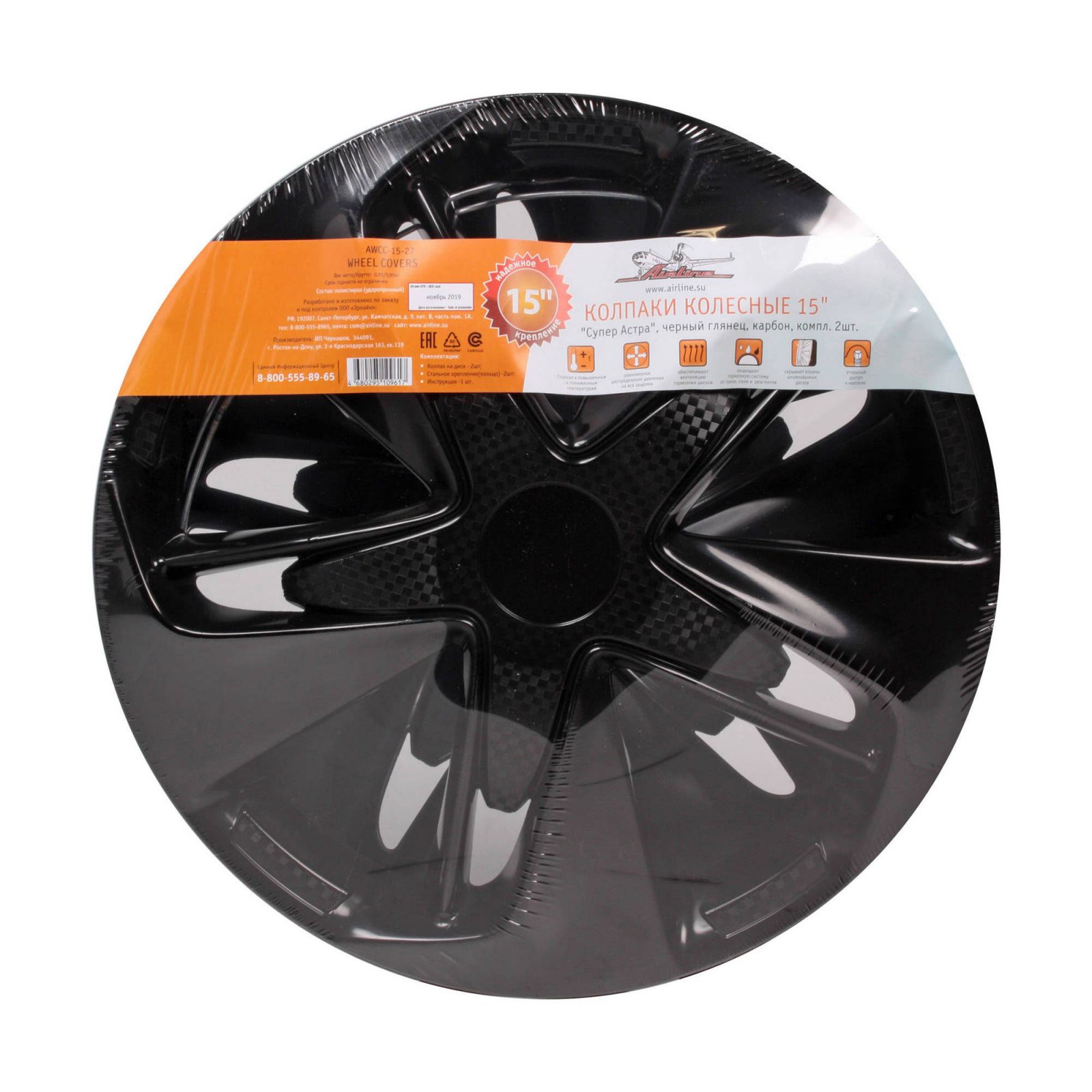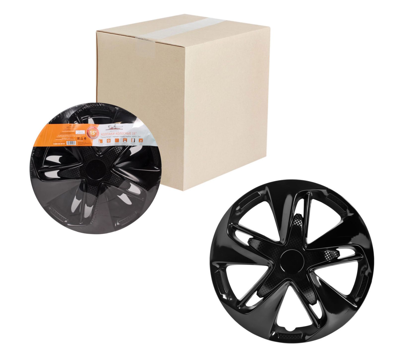Колпаки колесные 15" "Супер Астра", черный глянец, карбон, компл. 2шт. (AWCC-15-27)