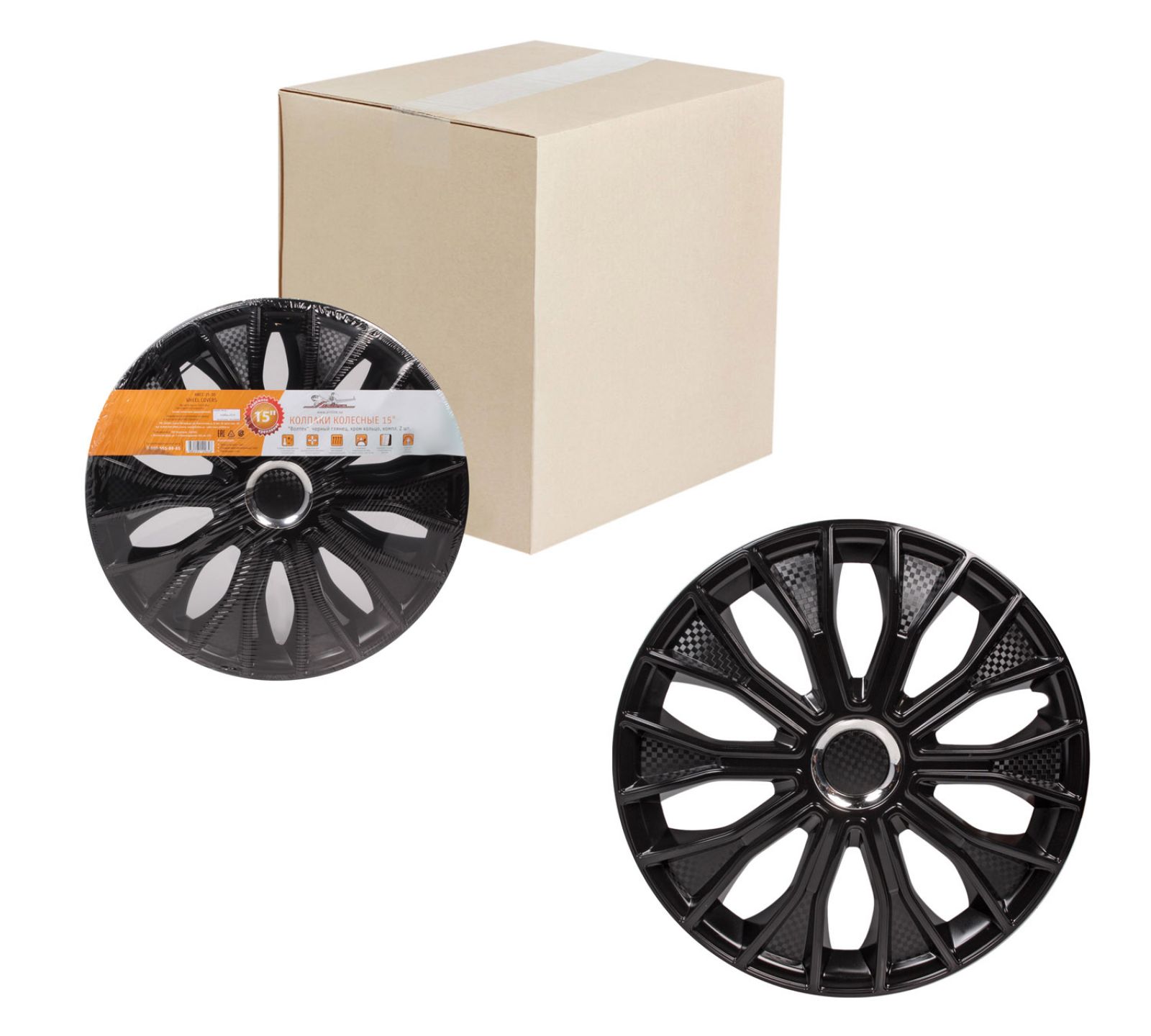Колпаки колесные 15" "Волтек", черный глянец, карбон, компл. 2 шт. (AWCC-15-17)