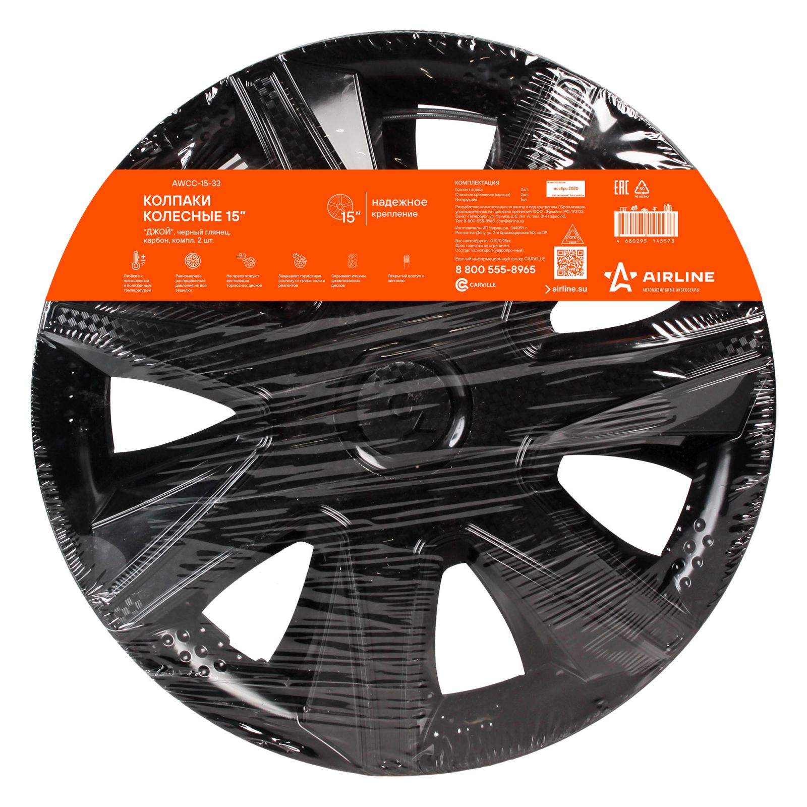 Колпаки колесные 15" "Джой", черный глянец, карбон, компл. 2 шт. (AWCC-15-33)