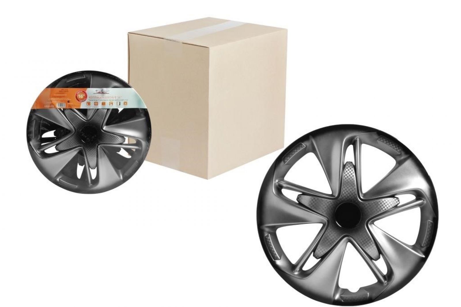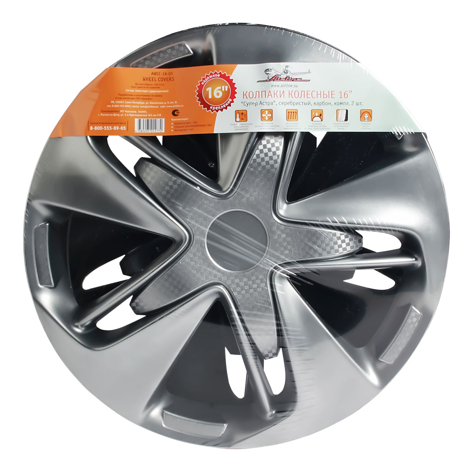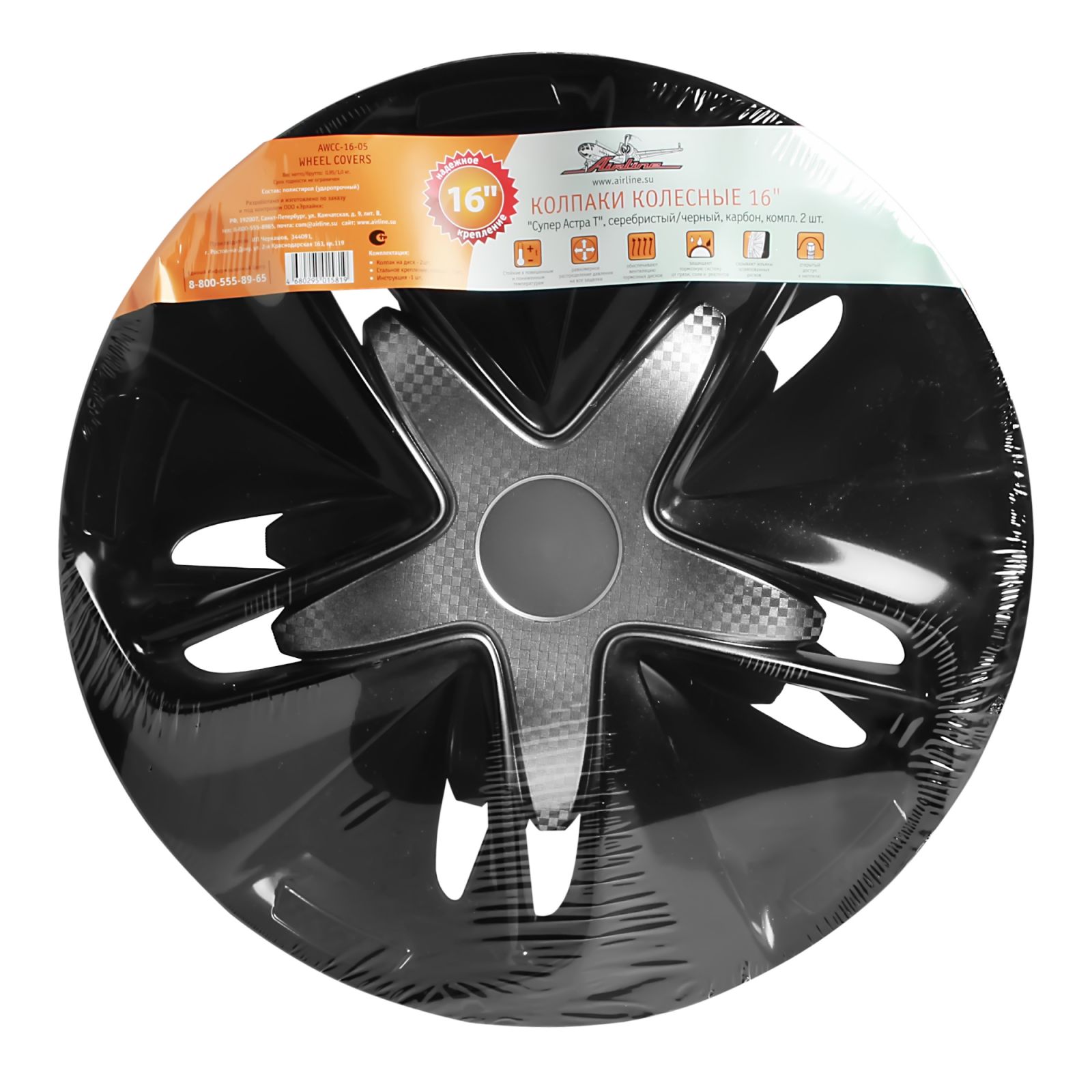 Колпаки колесные 16" "Супер Астра +", серебристо-черный, карбон, компл. 2 шт. (AWCC-16-02)