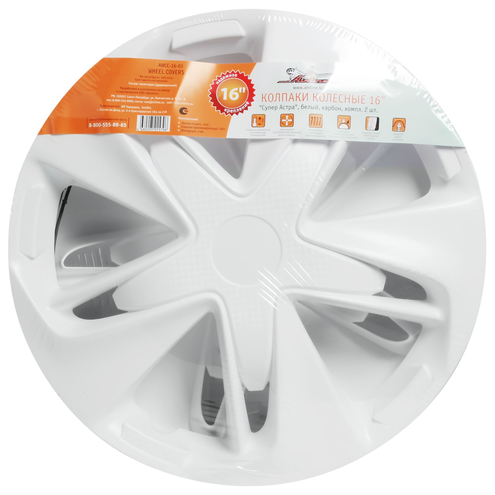 Колпаки колесные 16" "Супер Астра", белый, карбон, компл. 2 шт. (AWCC-16-03)
