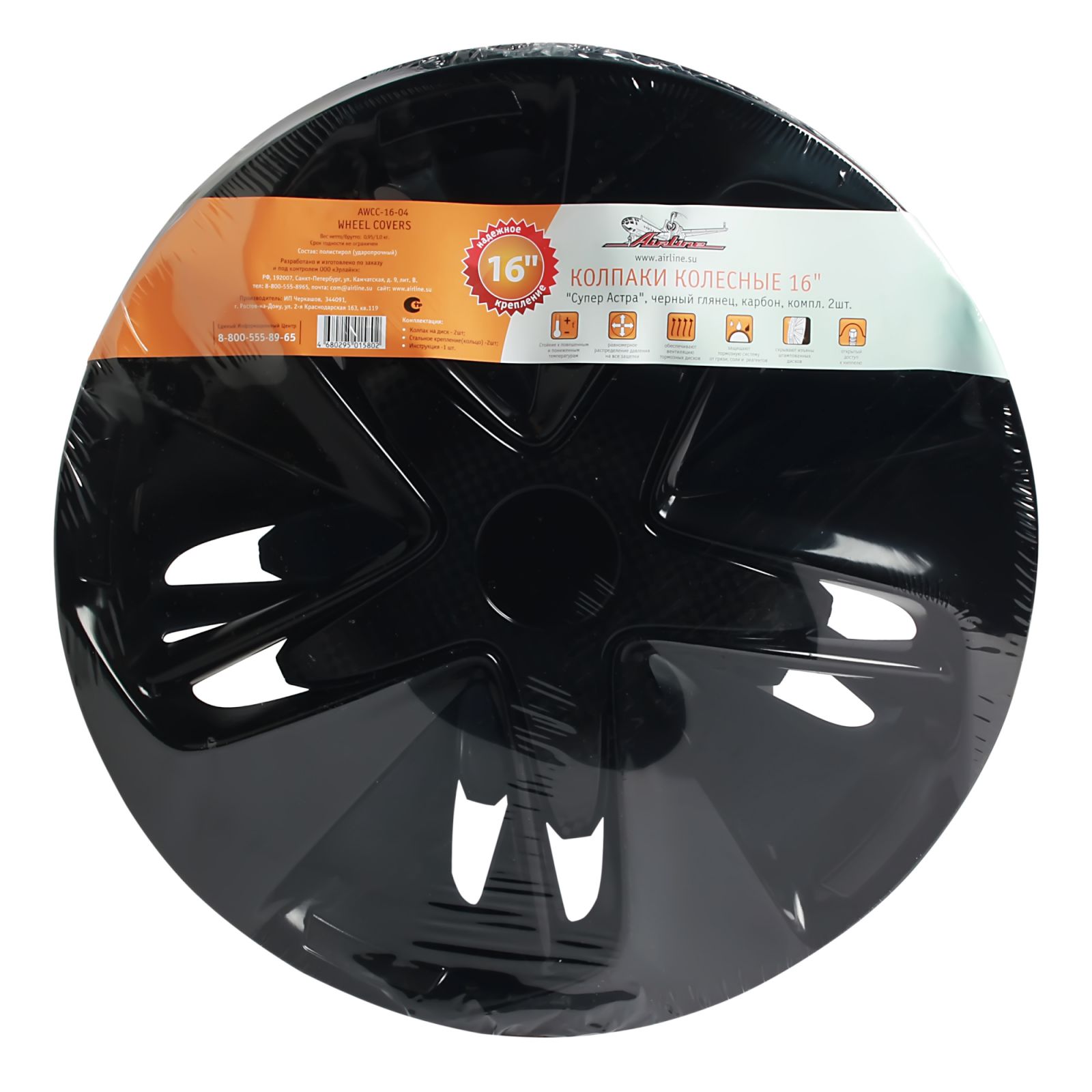 Колпаки колесные 16" "Супер Астра", черный глянец, карбон, компл. 2шт. (AWCC-16-04)