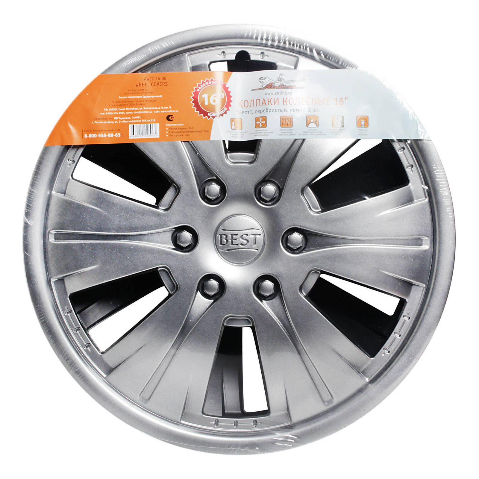 Колпаки колесные 16" "Бест", серебристый, компл. 2 шт. (AWCC-16-06)