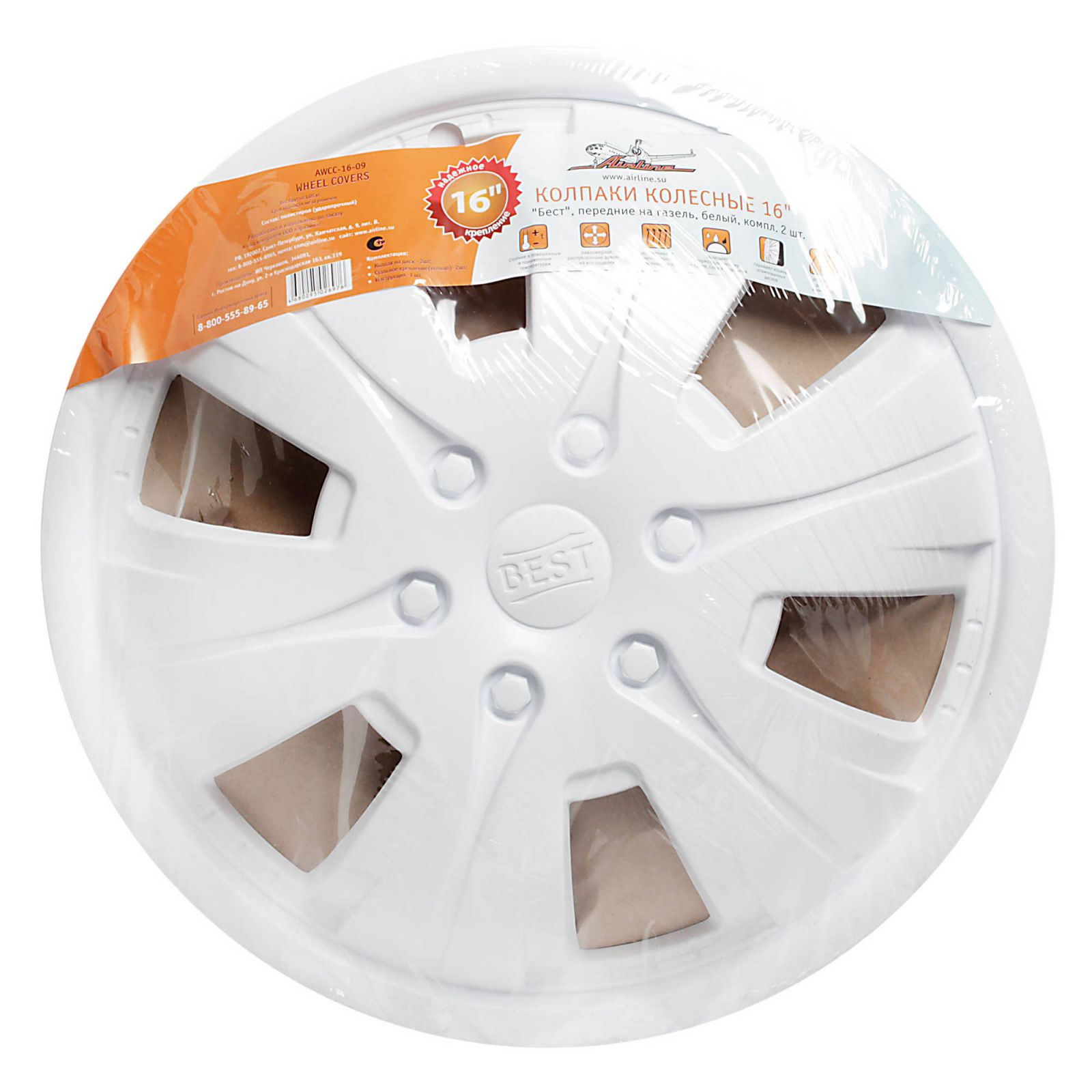 Колпаки колесные 16" "Бест", передние на газель, белый, компл. 2 шт. (AWCC-16-09)