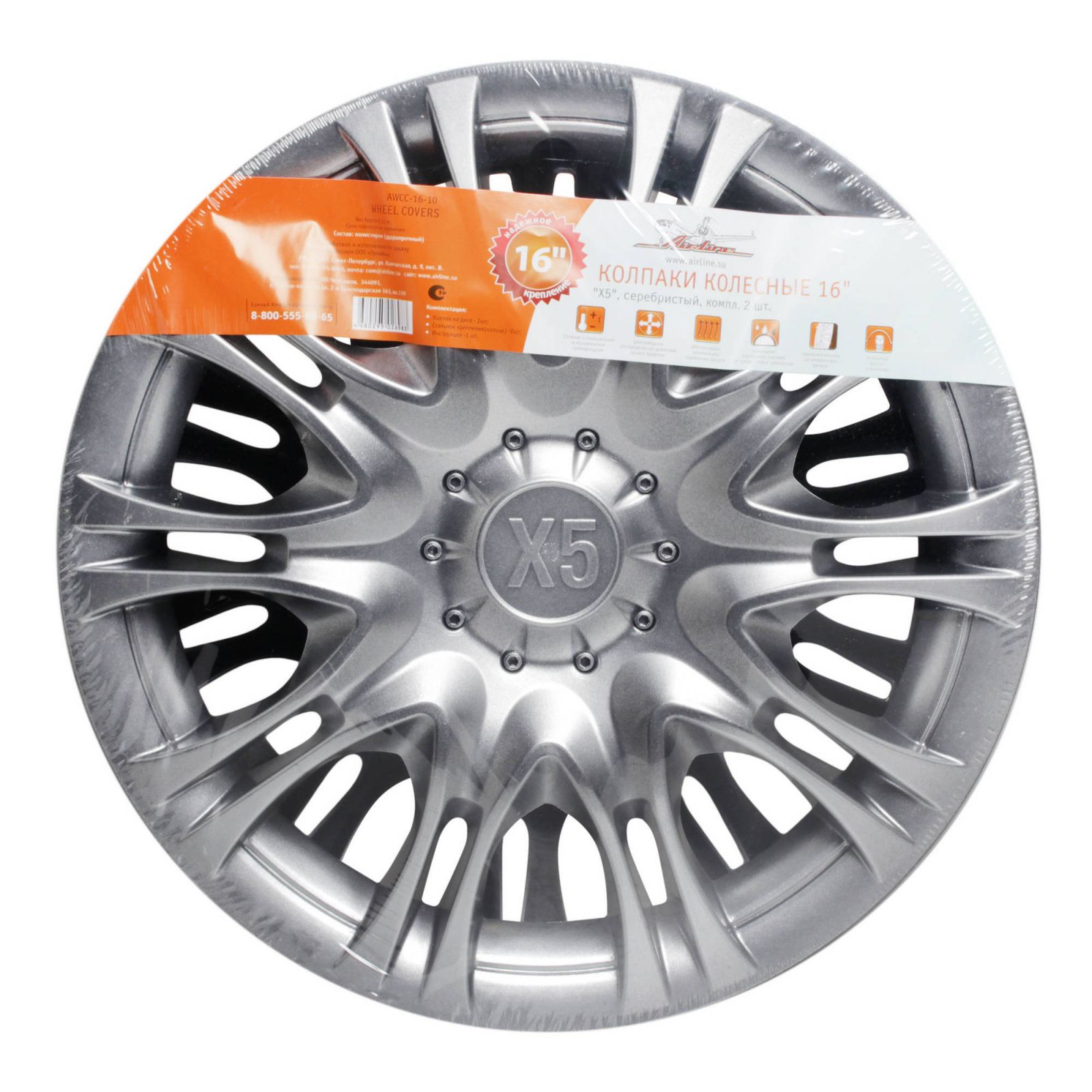 Колпаки колесные 16" "Х5", серебристый, компл. 2 шт. (AWCC-16-10)