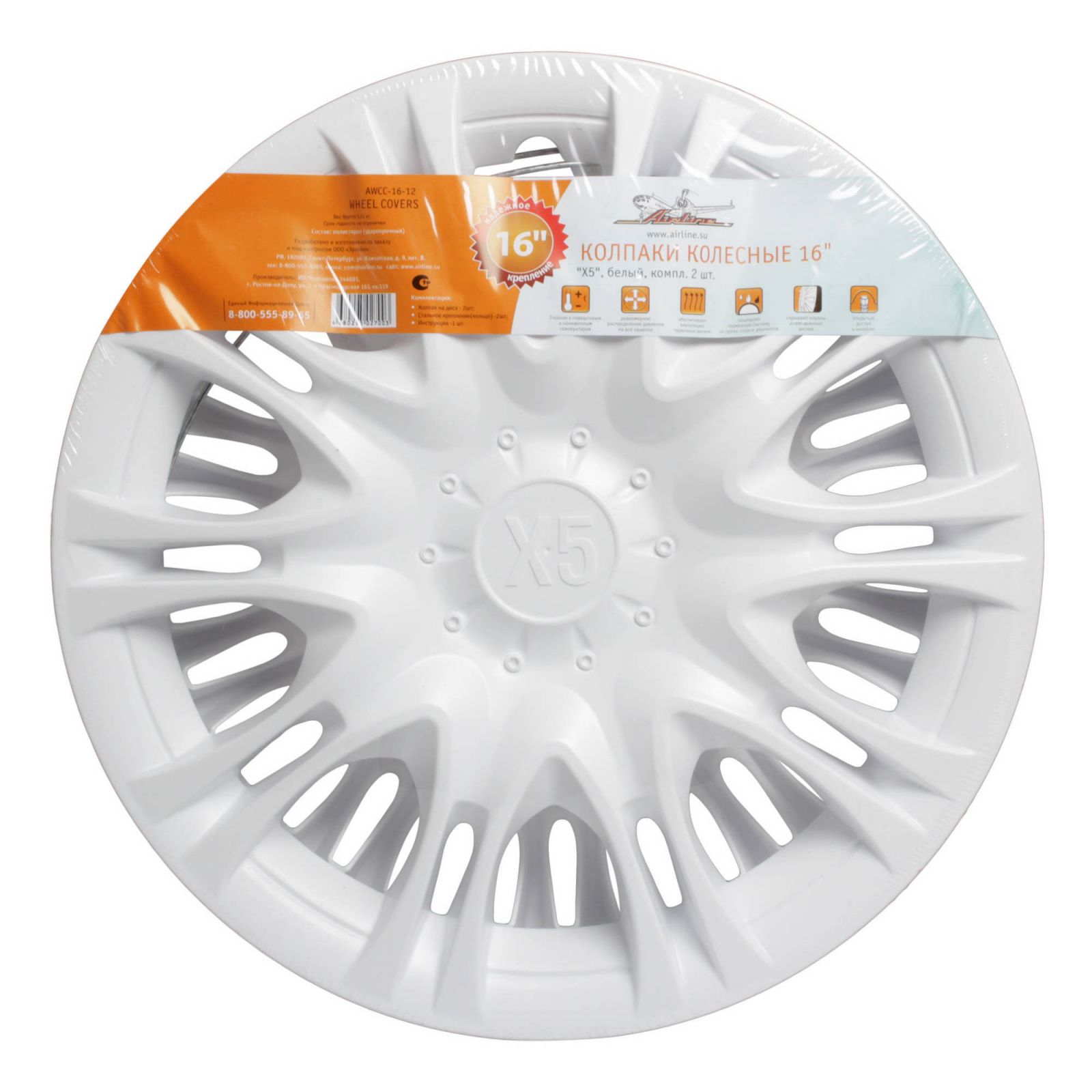 Колпаки колесные 16" "Х5", белый, компл. 2 шт. (AWCC-16-12)