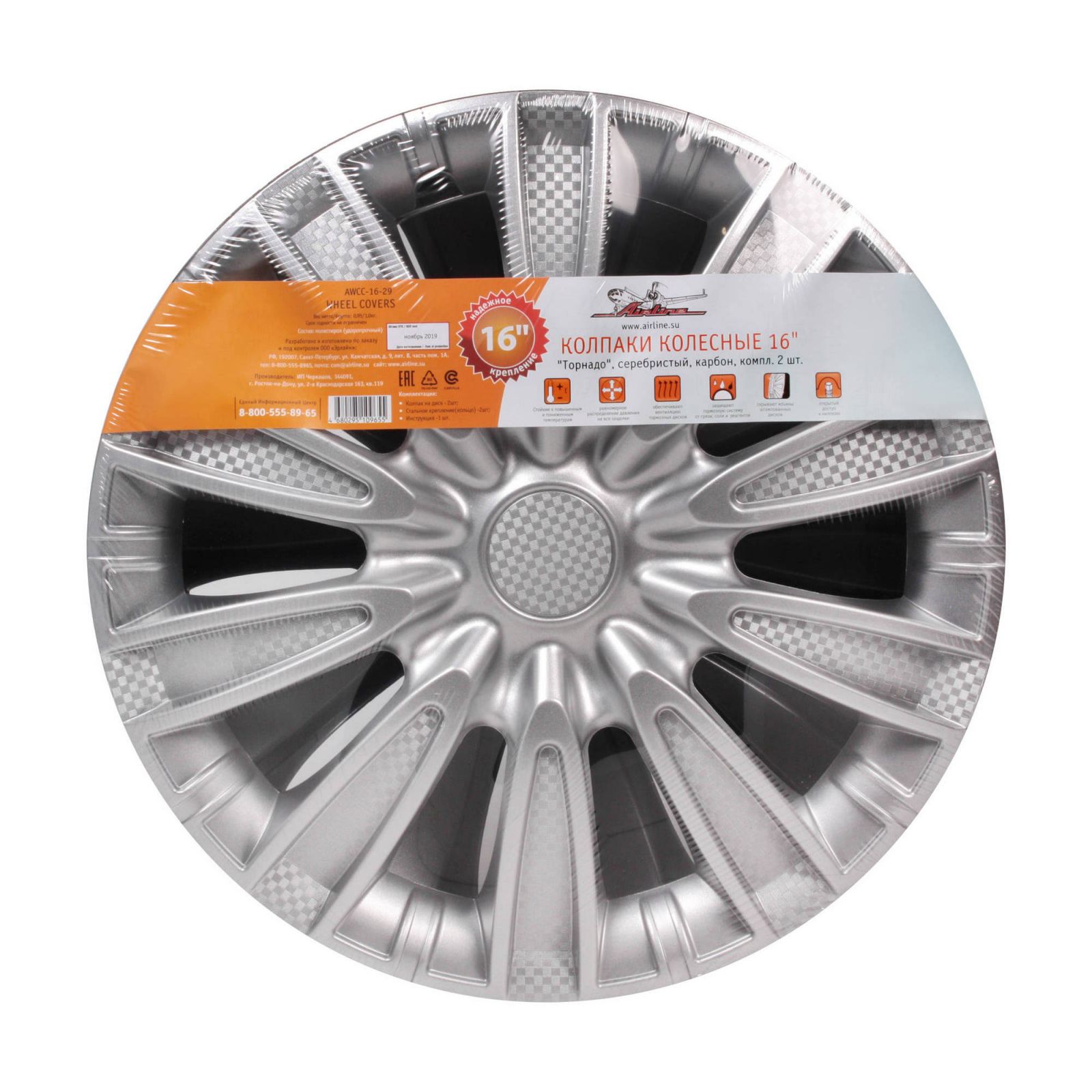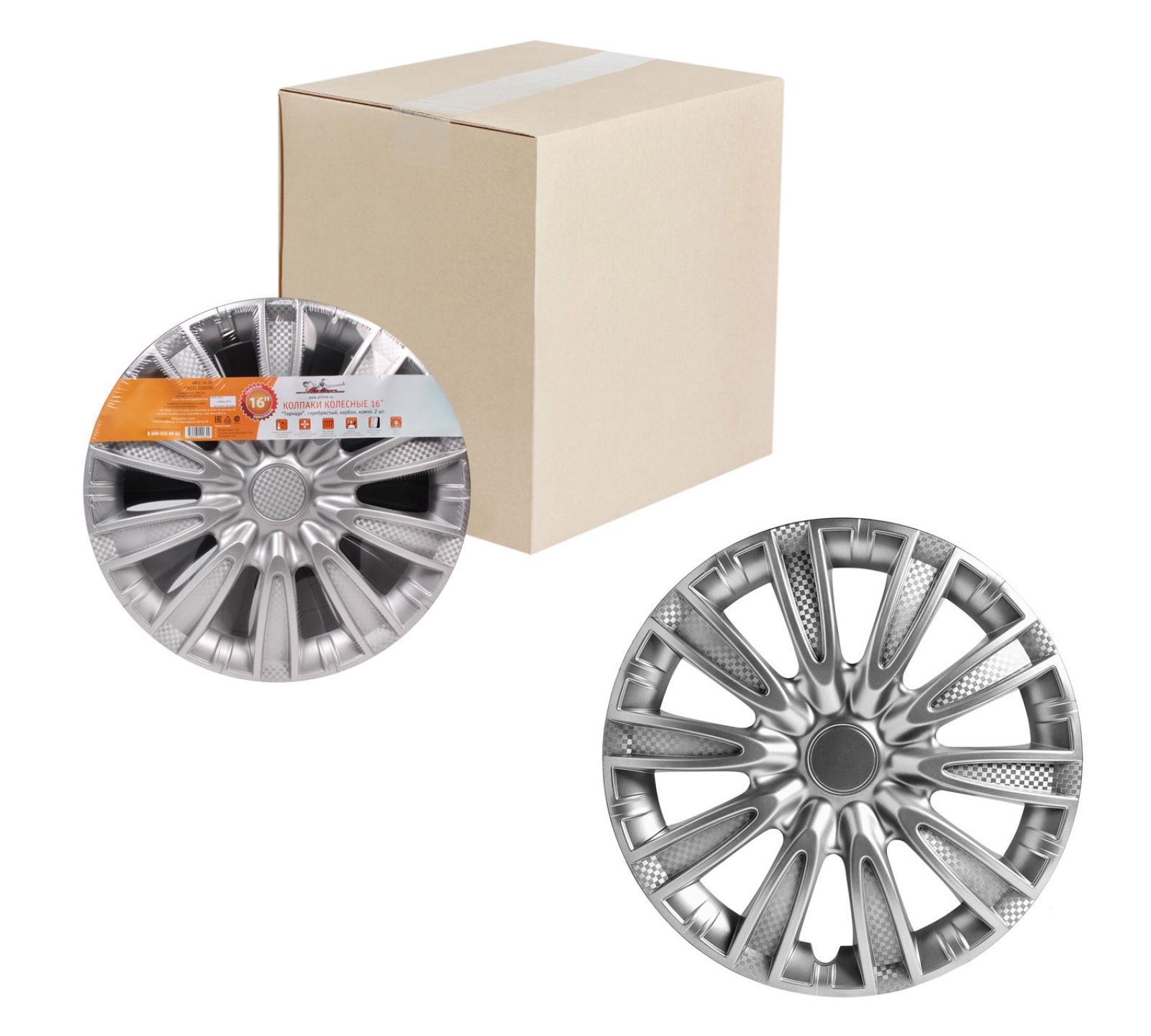 Колпаки колесные 16" "Торнадо", серебристый, карбон, компл. 2 шт. (AWCC-16-29)