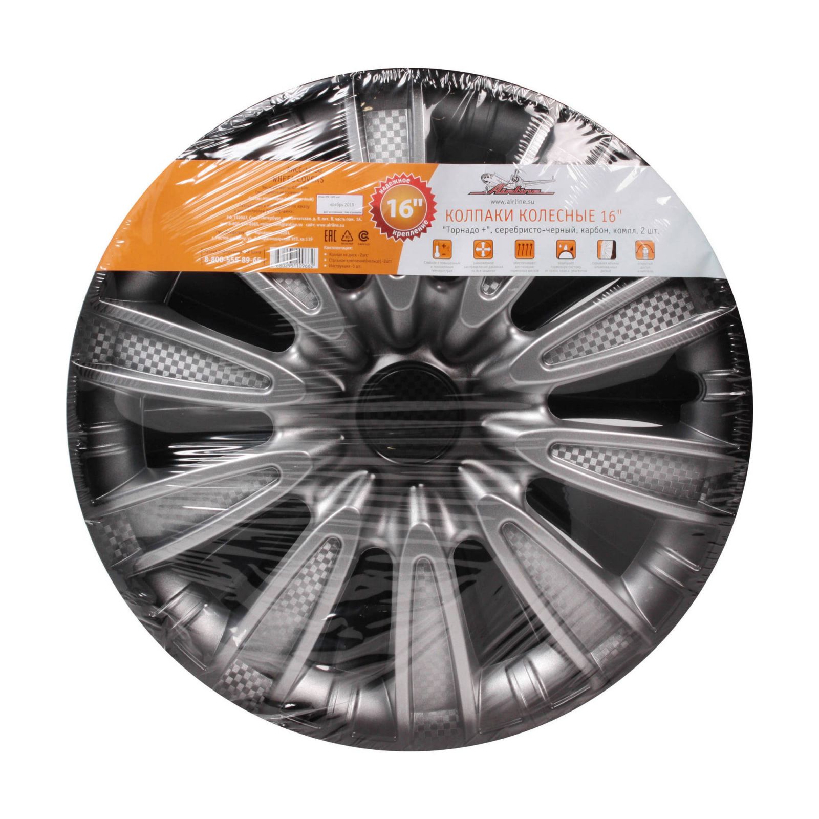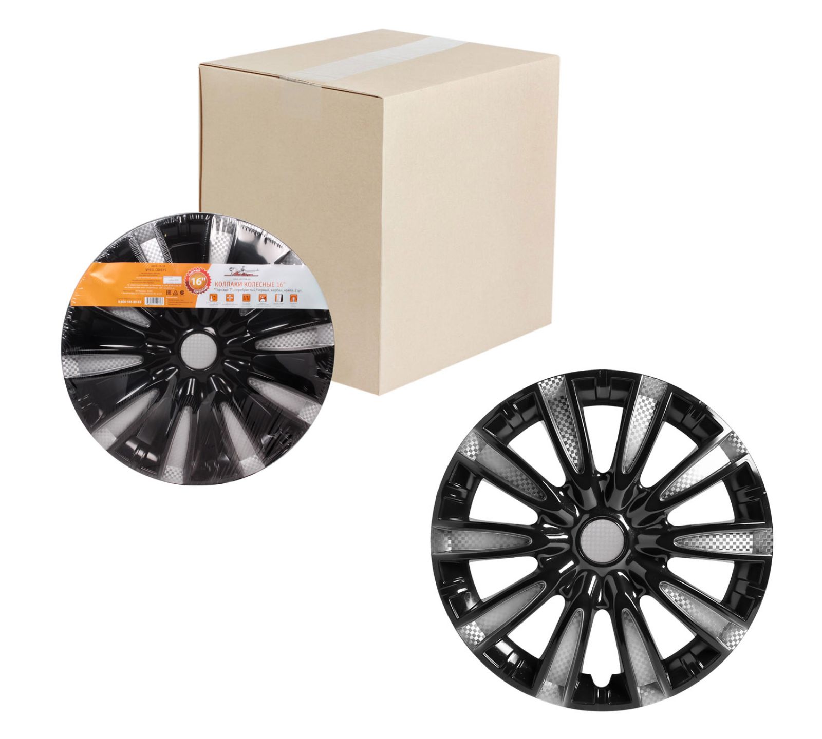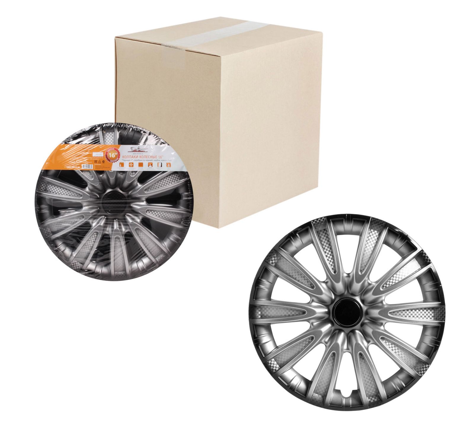 Колпаки колесные 16" "Торнадо +", серебристо-черный, карбон, компл. 2 шт. (AWCC-16-30)