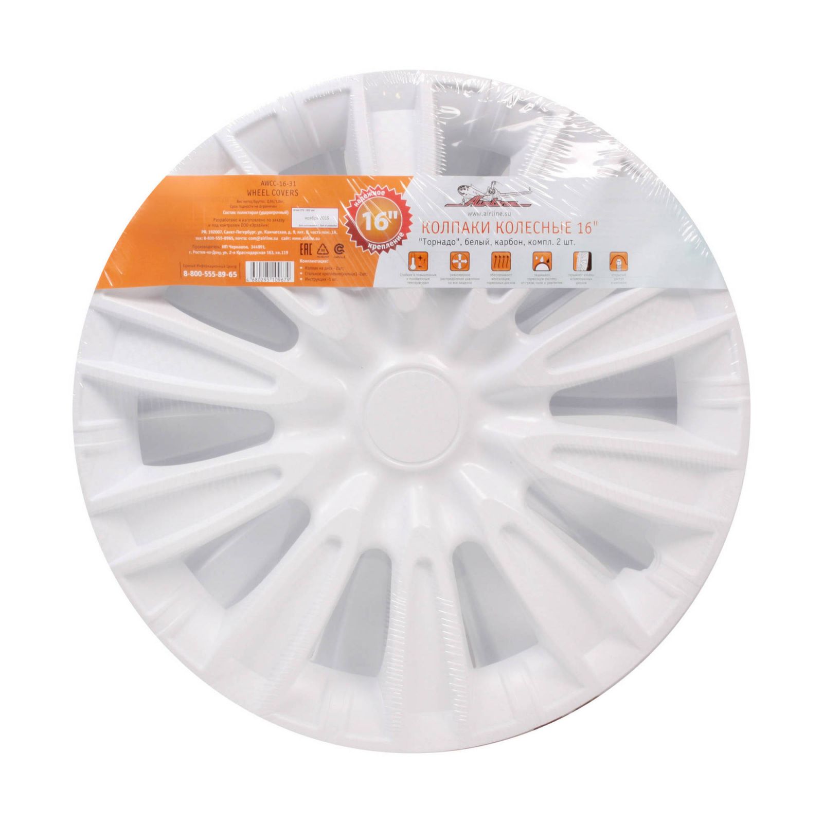 Колпаки колесные 16" "Торнадо", белый, карбон, компл. 2 шт. (AWCC-16-31)