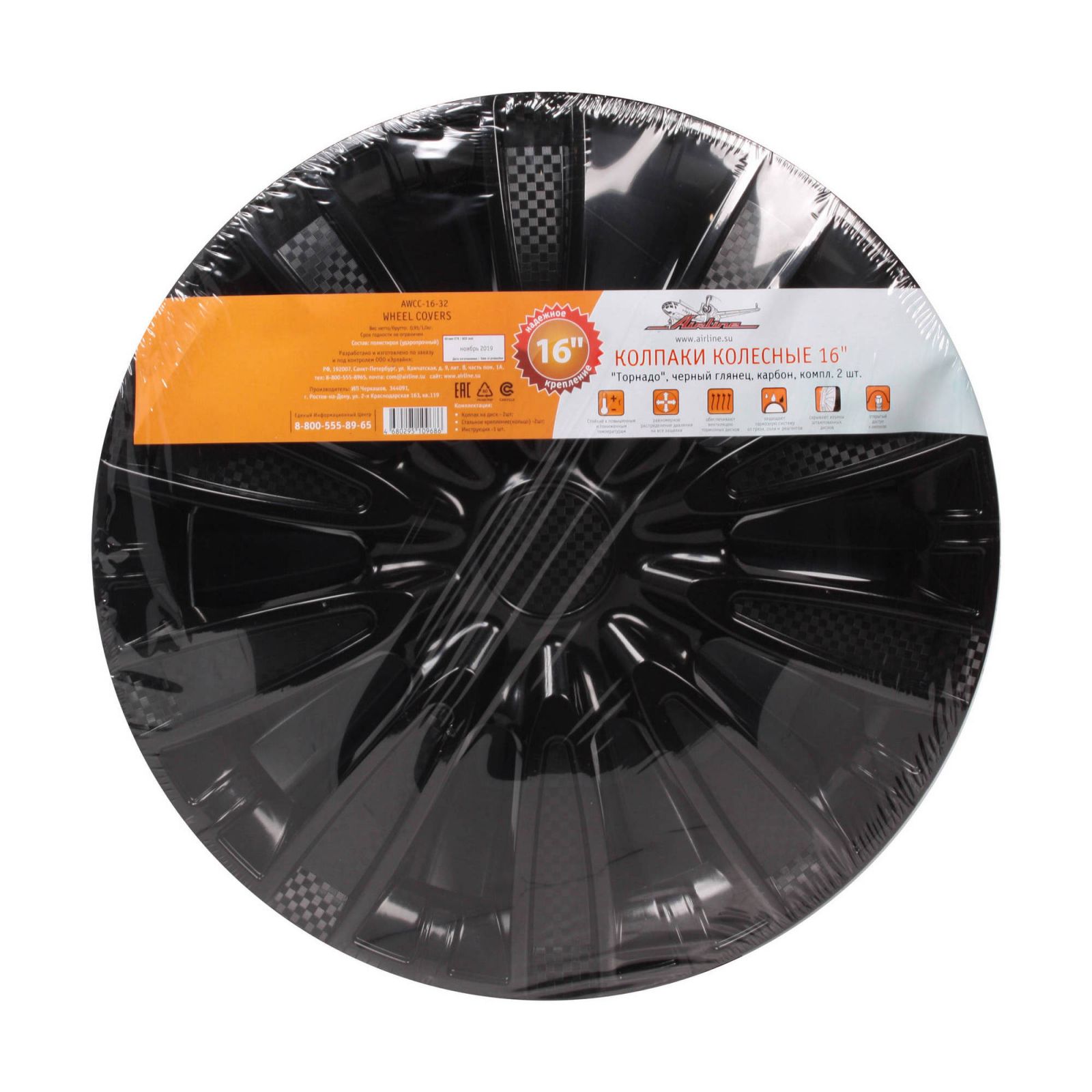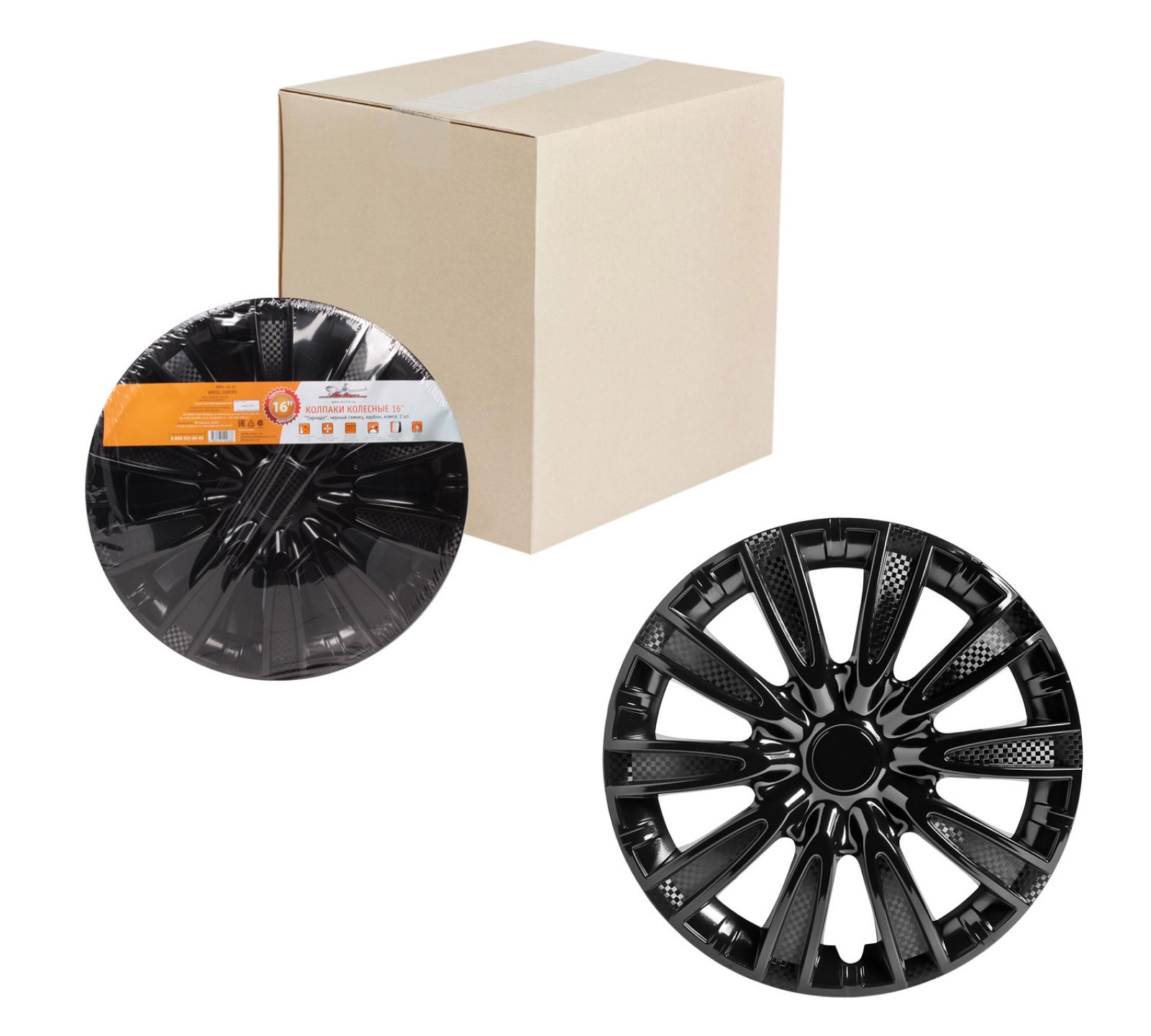 Колпаки колесные 16" "Торнадо", черный глянец, карбон, компл. 2 шт. (AWCC-16-32)