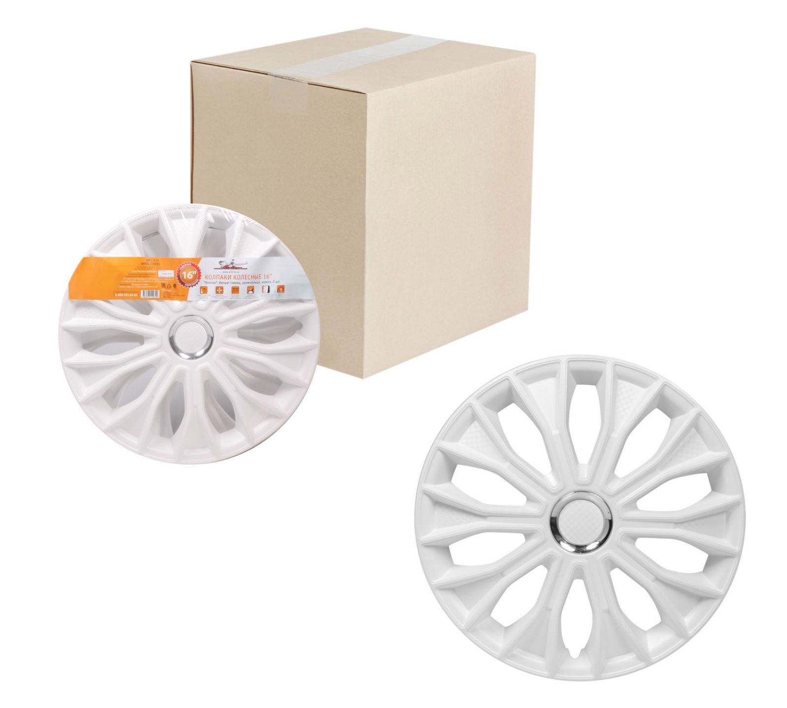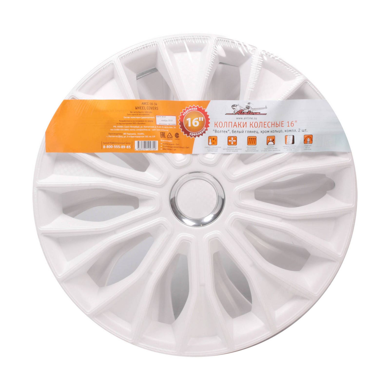 Колпаки колесные 16" "Волтек", белый глянец, хром кольцо, компл. 2 шт. (AWCC-16-34)