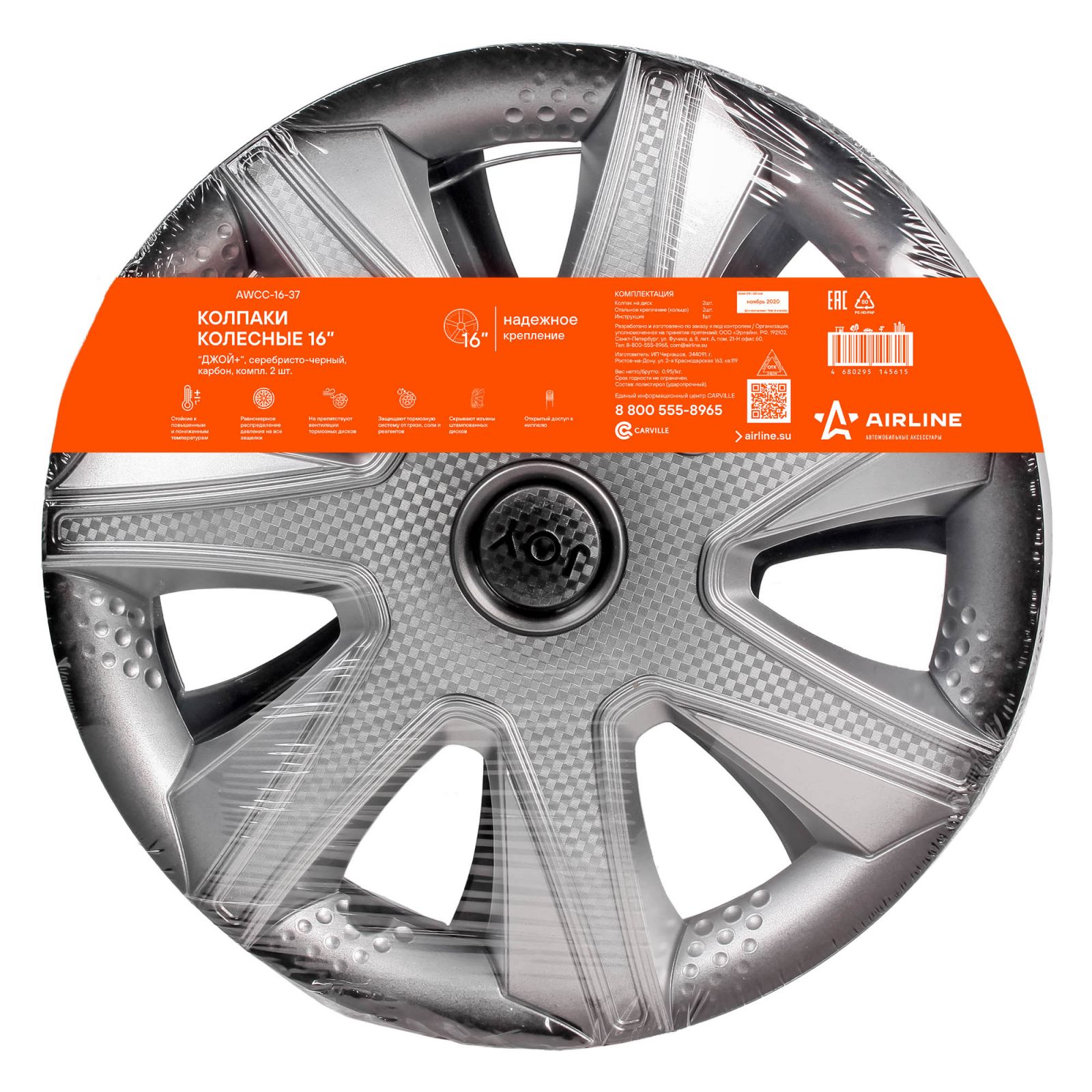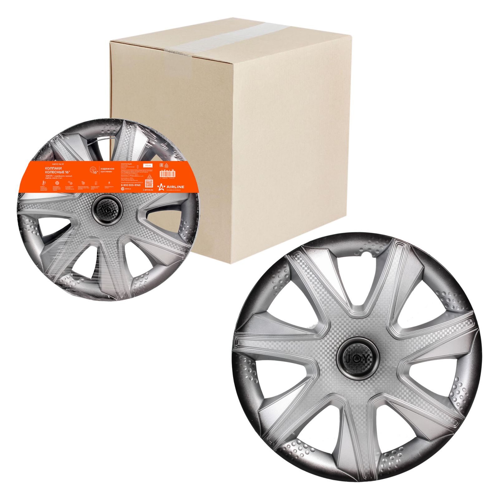 Колпаки колесные 16" "Джой +", серебристо-черный, карбон, компл. 2 шт. (AWCC-16-37)