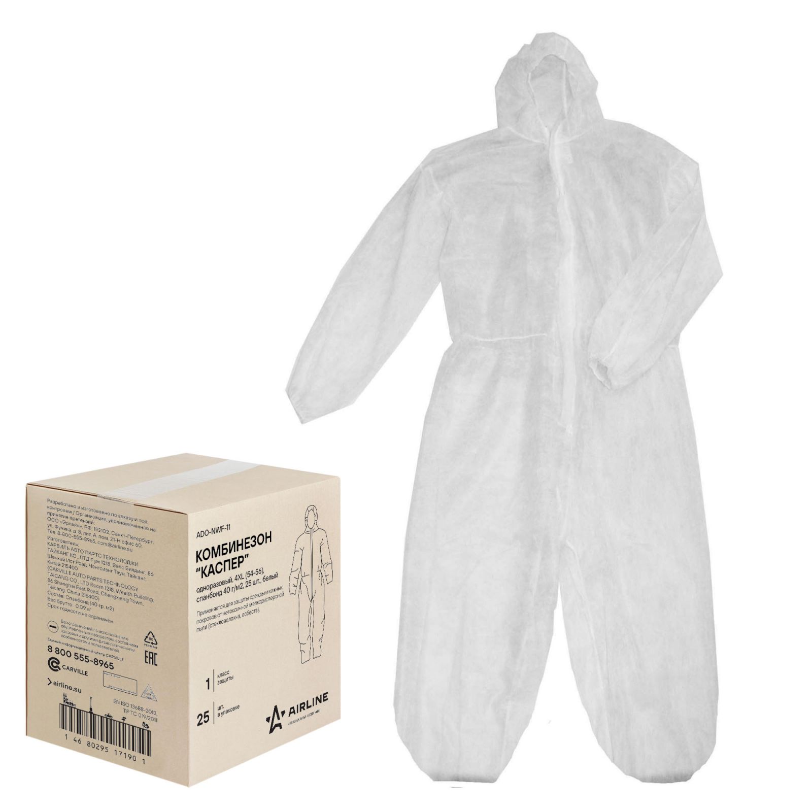 Комбинезон одноразовый "Каспер", 2XL(50-52),спанбонд 40г/м2, 1 шт., белый, в инд.упак. (ADO-NWF-03)