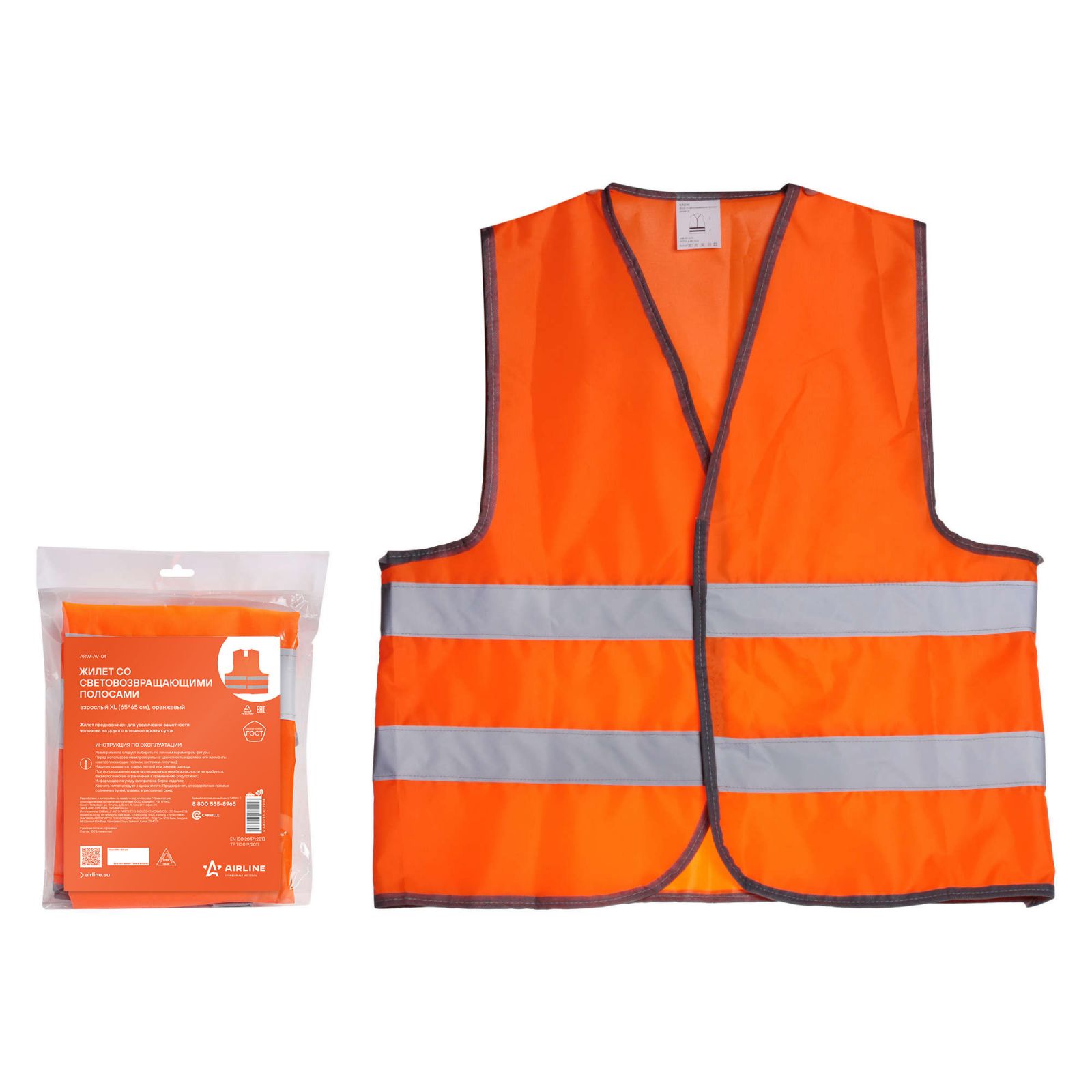 Жилет со световозвращающими полосами, взрослый, р. XL (65*65 см), оранжевый (ARW-AV-04)