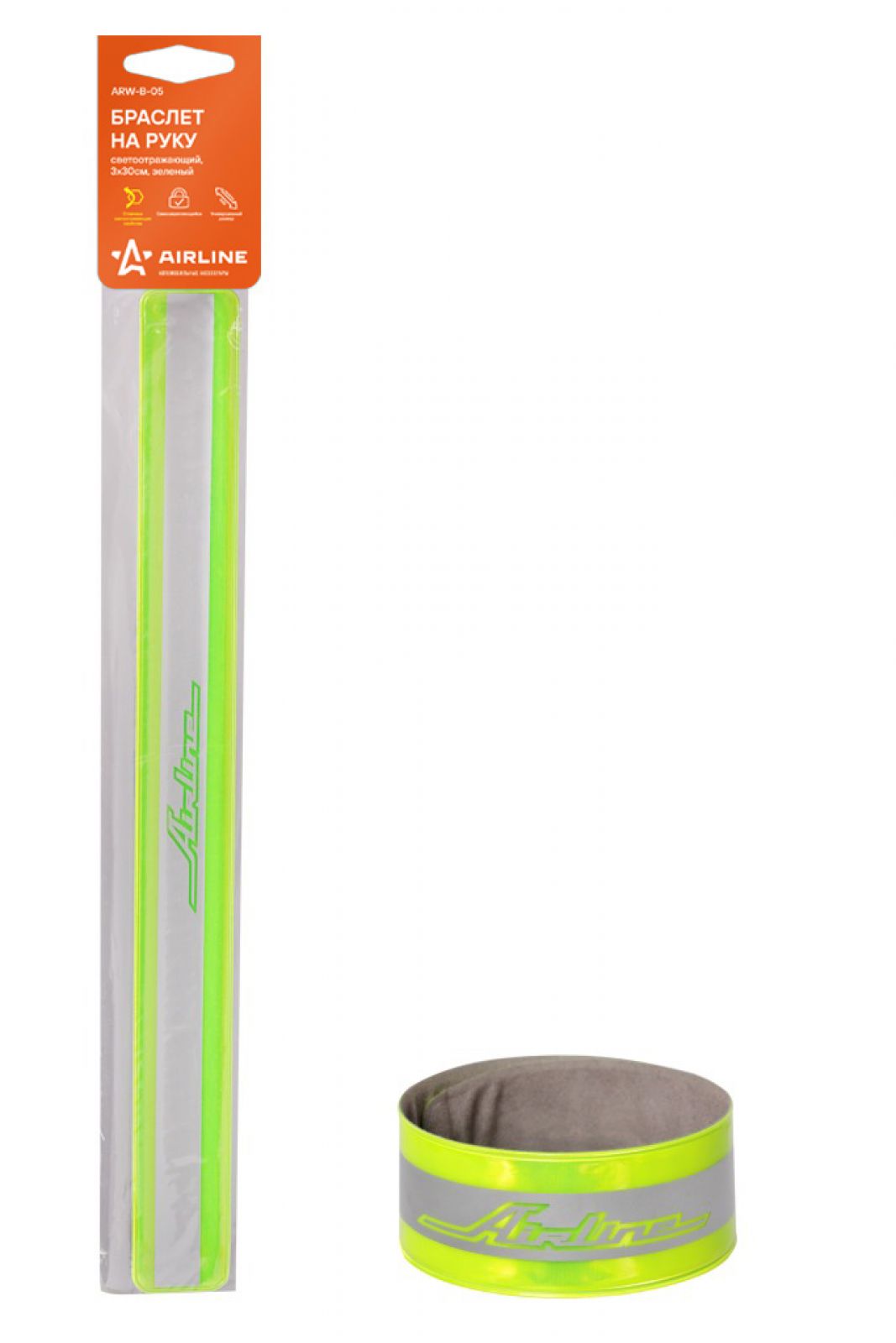 Браслет на руку, светоотражающий, 3* 30см, зеленый (ARW-B-05)