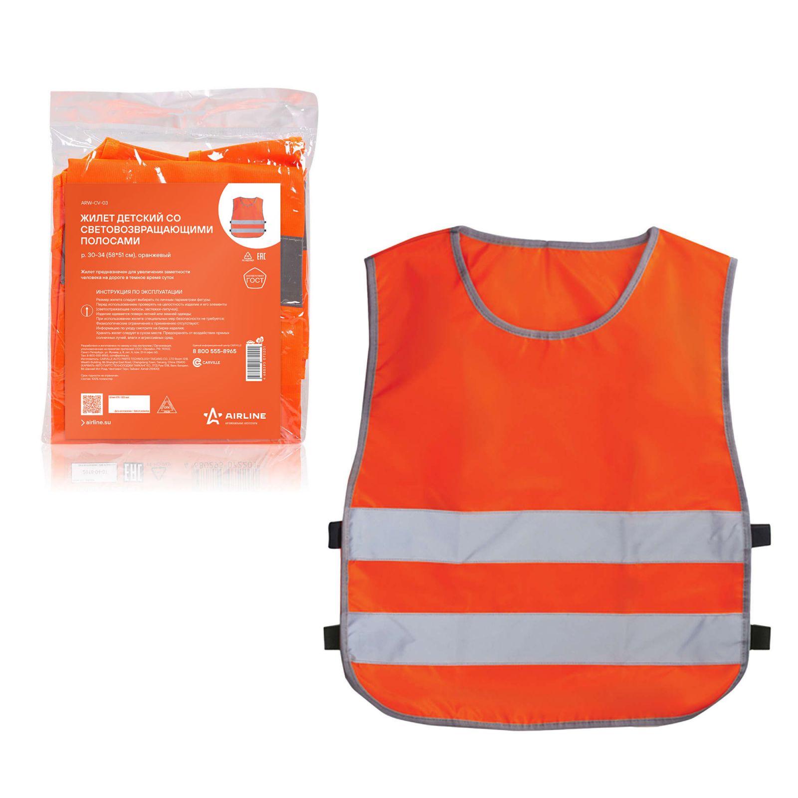 Жилет детский со световозвращающими полосами, р. 30-34 (58*51 см), оранжевый (ARW-CV-03)