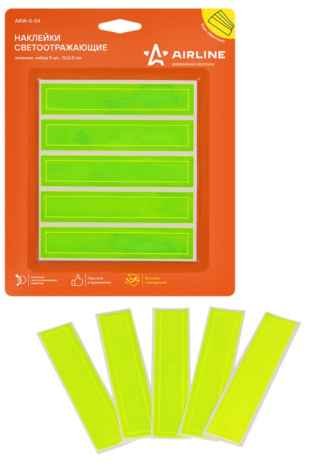 Наклейки светоотражающие, набор 5 шт.,12*2,5 см, зеленые (ARW-S-04)